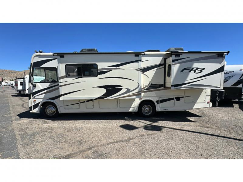 When you own this FR3 Crossover Class A gas motorhome, you are able to begin each of your vacations the moment you take this unit out onto the road. The power fold-away bunk over the cab and the king-size bed in the private bedroom are what allow this coach to sleep eight people while traveling, which means that the fun doesn't ever have to stop since you can bring everyone along with you, and because this unit comes with safety features like the deadbolt lock, fire extinguisher, and smoke detector, you can all sleep soundly knowing that this motorhome will protect you from unwanted variables.