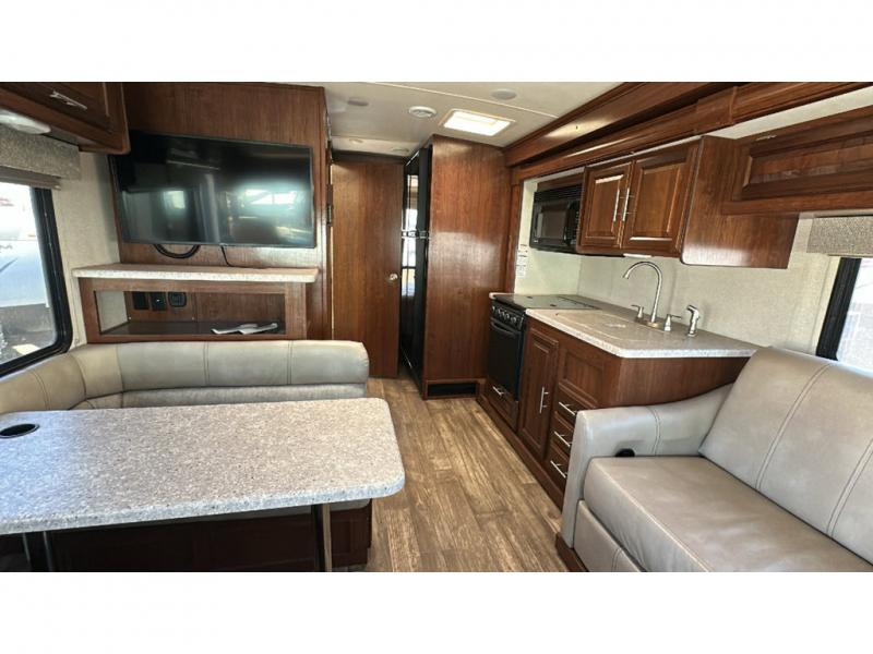 This unit by Forest River has been outfitted with the latest in modern advances when it comes to motorhomes. The LED interior lighting allows the entire coach to feel bright and cheerful even on the darkest days, and the 6' 10" ceiling truly gives you the space you need to move around freely without the concern of bumping your head. Even the exterior portion of this motorhome provides you with extra space to host a get together with friends because it includes an outdoor entertainment center for you to watch the big game on, marine-grade exterior speakers for you to use to jam out to your favorite tunes, and an electric awning with LED lights for you to take shelter under while you party.
