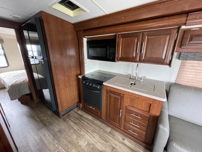 When you own this FR3 Crossover Class A gas motorhome, you are able to begin each of your vacations the moment you take this unit out onto the road. The power fold-away bunk over the cab and the king-size bed in the private bedroom are what allow this coach to sleep eight people while traveling, which means that the fun doesn't ever have to stop since you can bring everyone along with you, and because this unit comes with safety features like the deadbolt lock, fire extinguisher, and smoke detector, you can all sleep soundly knowing that this motorhome will protect you from unwanted variables.