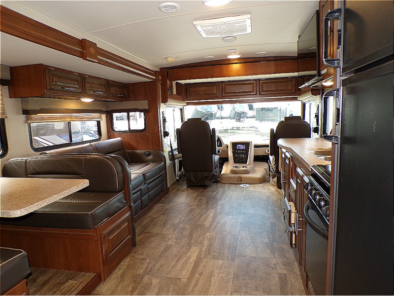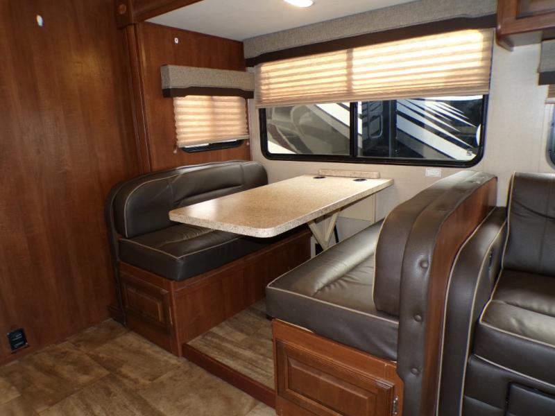 It is easy to make plenty of memories with your family when you choose this Georgetown 3 Series GT3 class A motor home by Forest River. A few luxury features include the "SUPER STORAGE" rear cargo compartment, the stainless steel bathroom sink, an exterior entertainment center, plus the remote/heated exterior mirrors. In the cab there is a custom dash with ABS side consoles, drink holders, 110V outlet/USB as well as manual cockpit side sun shades. The Shaw residential vinyl flooring is easy to clean. There are three interior colors to choose from and along the exterior there is a Champagne colored gel coat, plus so much more!