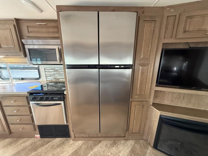 Get ready to enjoy each road trip with this Georgetown 5 Series GT5 31L5. You will be amazed at the beauty and attention to detail inside this model. Once you are parked then there is plenty of room to relax throughout the day. Within the roadside slide out you will find a Dream Dinette as well as a L-sofa. Across from the sofa along the outside wall of the bathroom there is a fireplace and a TV. If you have a little desk work to do then the passenger work station is sure to come in handy. A key feature in the kitchen is the 18 cu. ft. refrigerator where you can easily stock up and store your perishables and more!