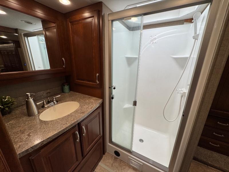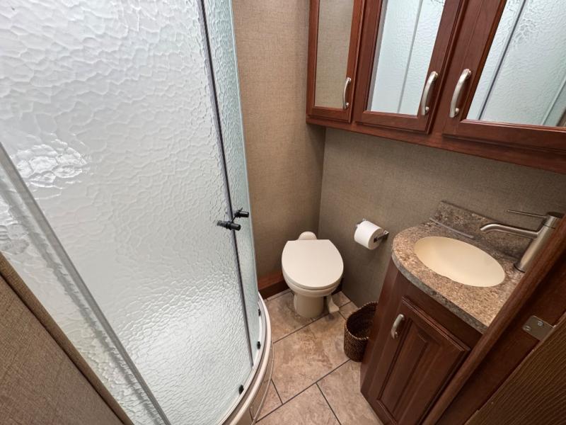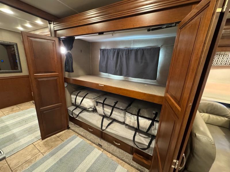 Start traveling to new destinations in comfort and style in this Legacy SR 340 38C class A motor home. This model by Forest River features plenty of comforts and space. From the full wall slide out, two full bathrooms, to the overhead cabinets, you will love all of the conveniences. Your kiddos are sure to enjoy the set of bunk beds that also have 2 20" LED TV's. You will be able to keep your group happy and full the entire trip with all of the space inside the residential refrigerator and the pantry. Enjoy the outdoors to it's fullest by grabbing a chair and your favorite beverage and relax underneath the 18' power awning with LED lights.