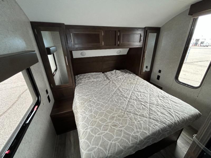 Outside the pass through storage runs the width of the travel trailer near the front for your outdoor gear, plus so much more!