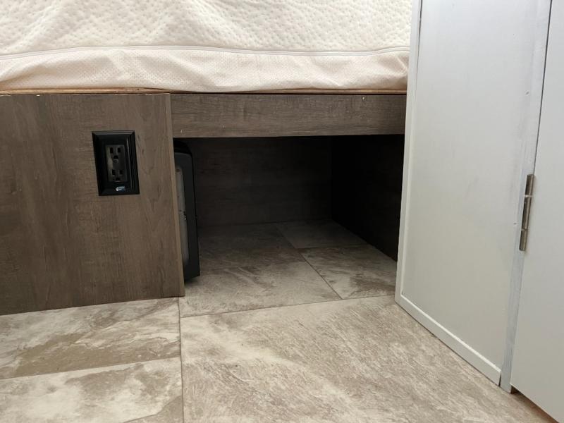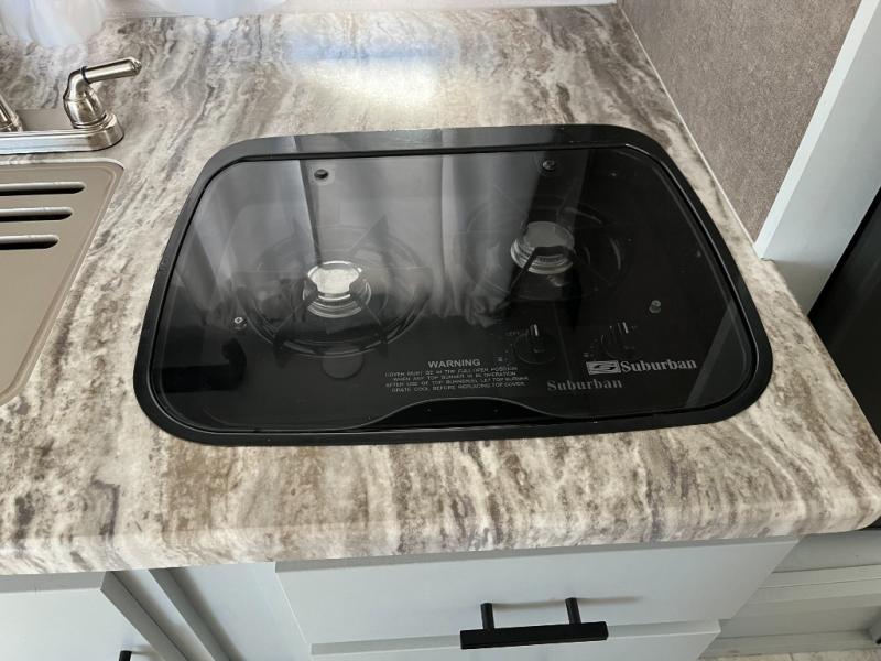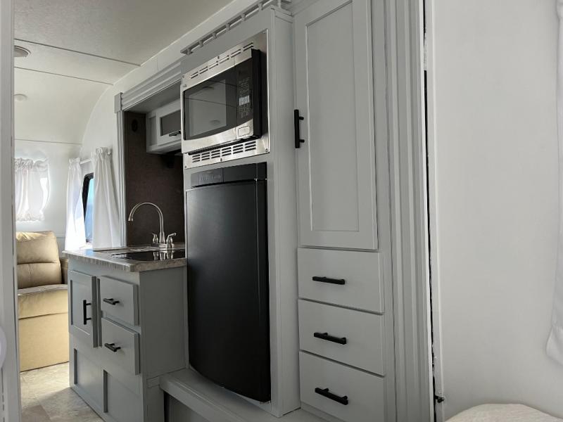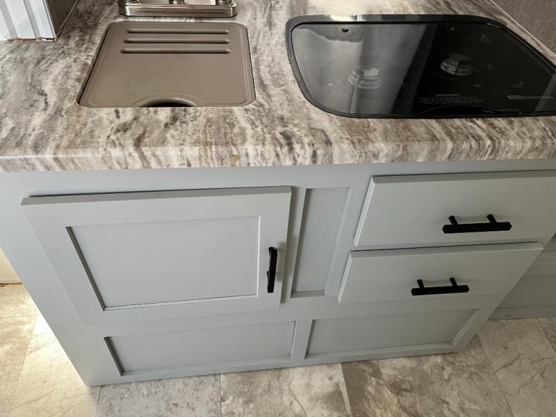 The kitchen area in the R-Pod 189 is designed for practicality and convenience. With a refrigerator, microwave, cooktop, and ample countertop space, you can prepare everything from quick snacks to full meals. Smart storage solutions keep your cookware and essentials organized and easily accessible.