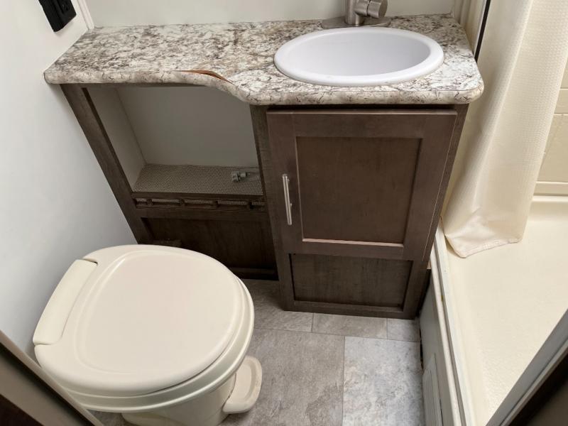 This travel trailer includes a practical bathroom with a shower, toilet, and vanity, giving you privacy and comfort wherever you camp. No need to rely on shared campground facilities — the R-Pod 189 makes daily routines easy and enjoyable.
