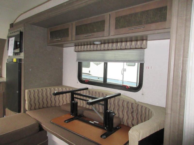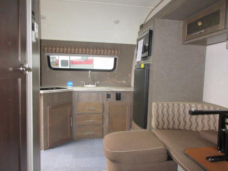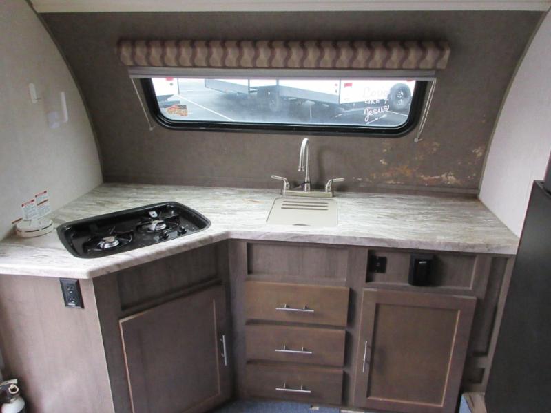 Whether your camping trips take you near or far you will want this single slide out R-Pod RP-179 travel trailer. The unique rear kitchen features extra counter space as well as a two burner range where you can whip up a snack or your meals. Enjoy your family time at the u-dinette and at night you will be impressed with how easily it is to convert this area for a sleeping spot for your kids or grandkids. Along the front there is a queen bed, and with the convenient wet bath you can get ready for your day without having to leave your trailer!