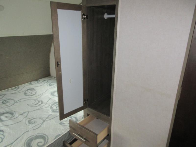 For a sturdy one-of-a-kind travel trailer, choose the R Pod by Forest River. Along the exterior you will find a two tone gel-coat fiberglass, custom tinted safety glass windows, and convenient magnet baggage door catches. Inside these models you will enjoy the Designer Carefree flooring, grey shaker style cabinets, hardwood drawer fronts with full extension ball bearing drawer glides, plus the decorative window treatments! These trailers are ready to go when you are! Come select your R Pod today!