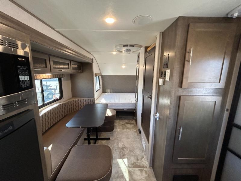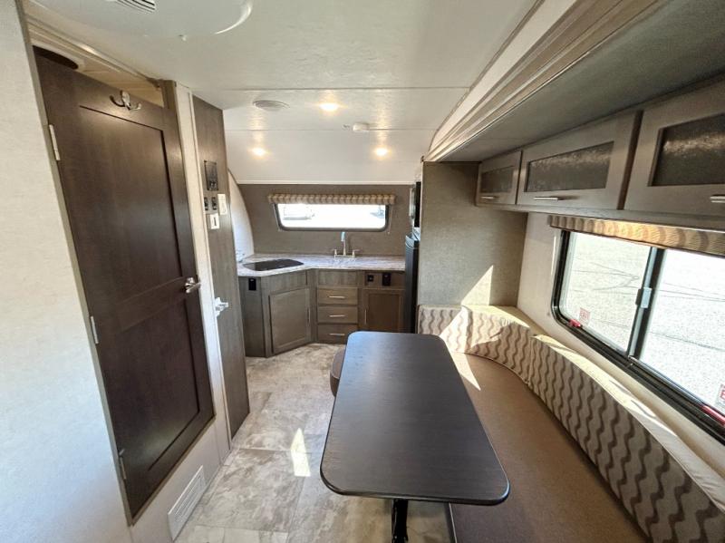 Whether your camping trips take you near or far you will want this single slide out R-Pod RP-179 travel trailer. The unique rear kitchen features extra counter space as well as a two burner range where you can whip up a snack or your meals. Enjoy your family time at the u-dinette and at night you will be impressed with how easily it is to convert this area for a sleeping spot for your kids or grandkids. Along the front there is a queen bed, and with the convenient wet bath you can get ready for your day without having to leave your trailer!