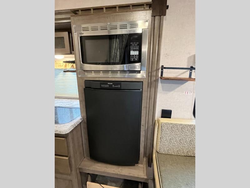 For a sturdy one-of-a-kind travel trailer, choose the R Pod by Forest River. Along the exterior you will find a two tone gel-coat fiberglass, custom tinted safety glass windows, and convenient magnet baggage door catches. Inside these models you will enjoy the Designer Carefree flooring, grey shaker style cabinets, hardwood drawer fronts with full extension ball bearing drawer glides, plus the decorative window treatments! These trailers are ready to go when you are! Come select your R Pod today!