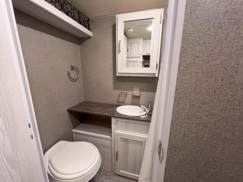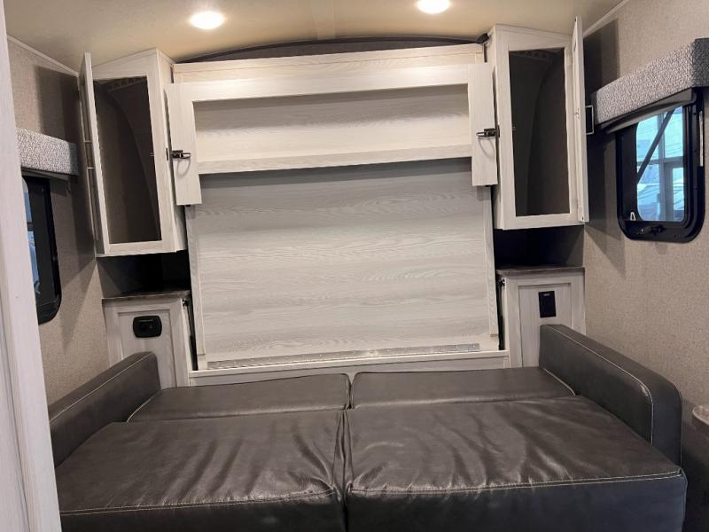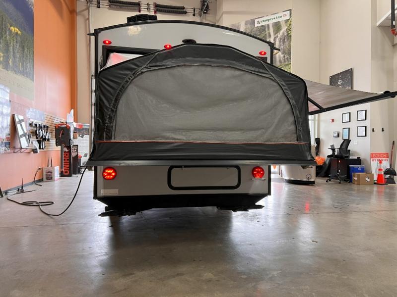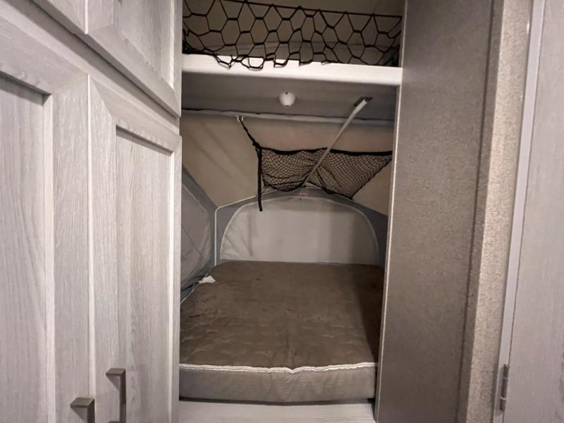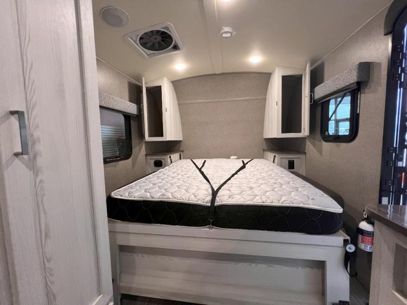 Perfect for couples or small families, the G17PR features a front sofa with a Murphy bed, giving you the flexibility to lounge during the day and sleep comfortably at night. In the rear, a queen-size tent end bed offers a cozy retreat for the kids or guests, and there’s a full rear bathroom so you can skip the campground facilities altogether.