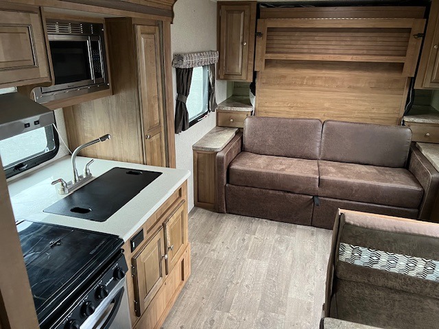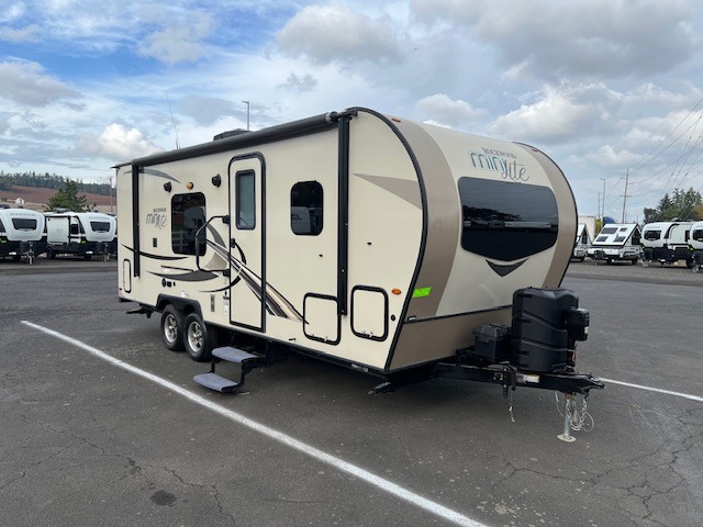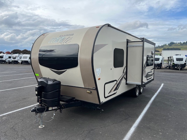 Rockwood takes pride in packing as much value in as little space as they can in this Mini Lite Series to make your investment into these models go a long way. They have quality vacuum bonded construction with their all steel I-beam's and six sided aluminum frames. They do not take shortcuts in any of their units. They are all built from the ground up. The underbelly increases aerodynamics, the Dexter Torflex axles are self-dampening and have independent wheel suspension, and the interior is all residential with solid kitchen countertops and Driftwood and Maple cabinets. Take a look at these Rockwood Mini Lite's today!