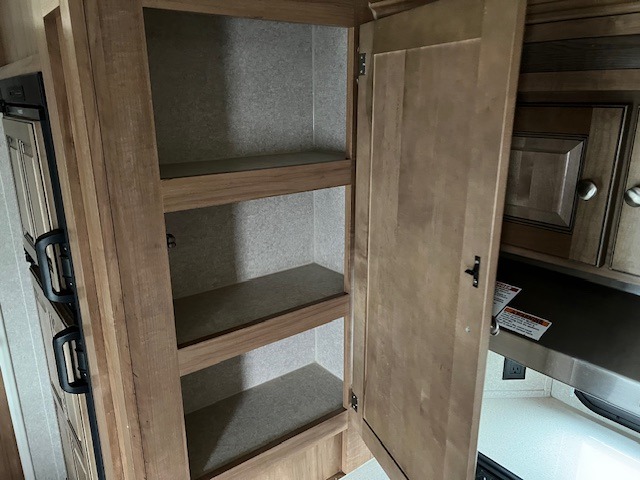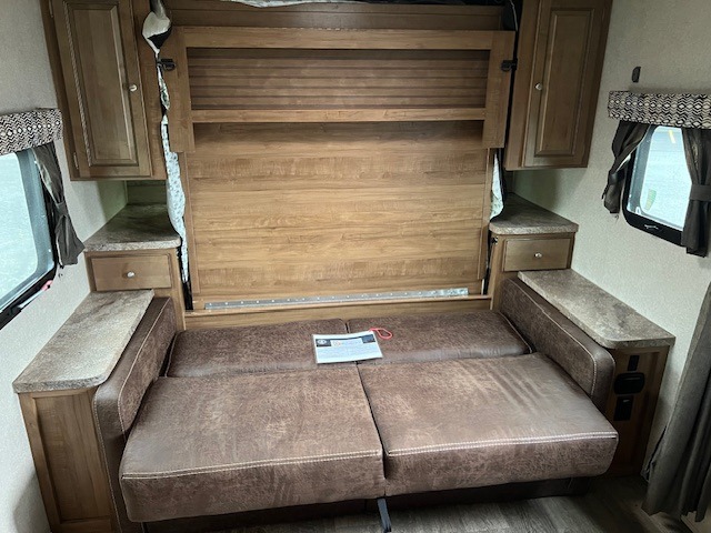 This single slide out Rockwood Mini Lite 2304KS by Forest River is a great travel trailer for a weekend away. In the kitchen area, there is a refrigerator and pantry for your food storage needs while camping. You can hang your clothes in the wardrobe and lay your keys on a nightstand on either side of the sofa/Murphy bed. Outside be sure to enjoy the shade from the 15' awning, cooking your favorite camp meals on the gas grill, and the storage provided by the exterior compartments.