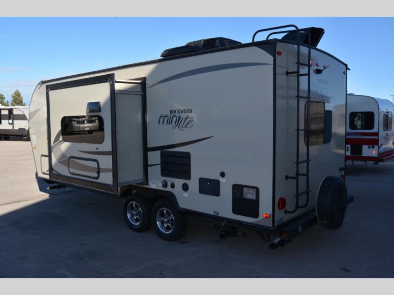 Rockwood takes pride in packing as much value in as little space as they can in this Mini Lite Series to make your investment into these models go a long way. They have quality vacuum bonded construction with their all steel I-beam's and six sided aluminum frames. They do not take shortcuts in any of their units. They are all built from the ground up. The underbelly increases aerodynamics, the Dexter Torflex axles are self-dampening and have independent wheel suspension, and the interior is all residential with solid kitchen countertops and Driftwood and Maple cabinets. Take a look at these Rockwood Mini Lite's today!