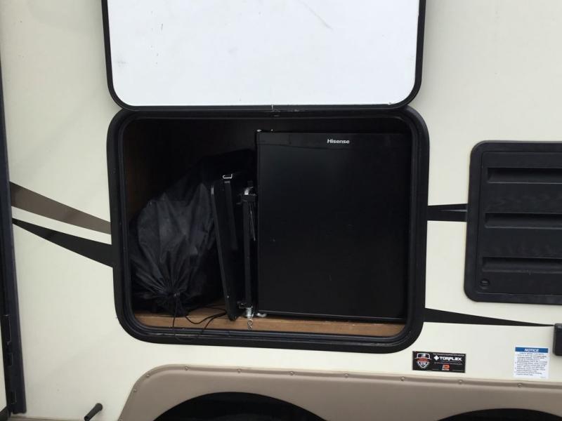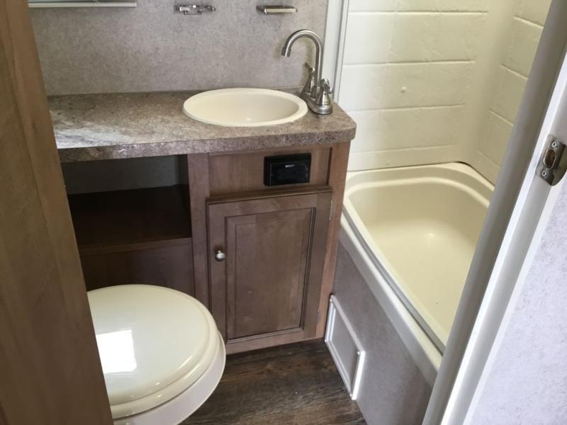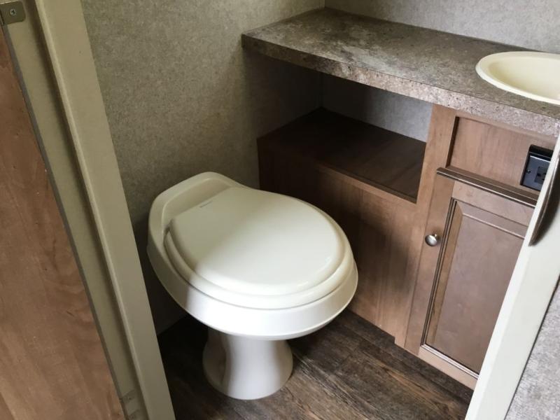 It's time to open the awning, set up a few camp chairs, grab a drink from the outside refrigerator, and relax by the fire when you aren't enjoying the inside comforts of this expandable. This Rockwood Roo 21DK offers plenty of sleeping space for up to six individuals. The front and rear queen tent end beds feature a shelf above each for storage. The bathroom is conveniently located across from the entry for easy access. And the kitchen slide out really opens up the space so you can enjoy being inside as much as outside. There is even an option to add a gas grill if like.
