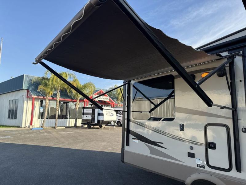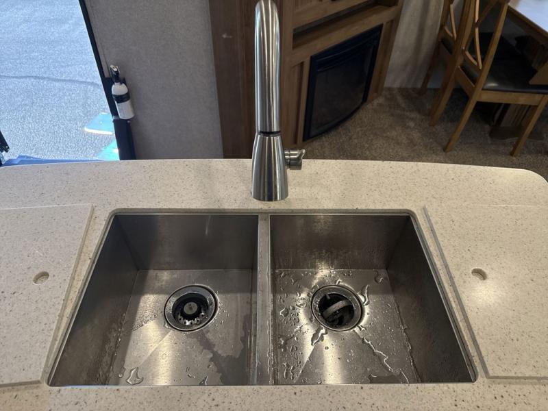 How would you like to camp with all of the comforts of home plus so much more? When you choose this 8289WS Rockwood Signature Ultra Lite you can have that and more! The triple slide outs help to maximize the overall livable floor space. The combined kitchen and living area are ideal for entertaining a guest or two. Along the rear wall there are two standard recliners or you can choose optional Lazy Boy chairs. Within one slide out you will find a 60" hide-a-bed sofa and across the room there is a corner entertainment center with an optional fireplace below. The full size kitchen has all of the amenities that you would expect to find at home, plus there is an island with a double sink. Head up the stairs and you will find the bathroom to your left and straight ahead is the bedroom with a Serta queen bed, nightstands, an overhead cabinet, plus you can add an optional TV. Outside you will find plenty of shade with two awnings and more!