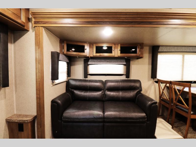 • Rear living area with comfortable seating and panoramic windows for scenic campsite views