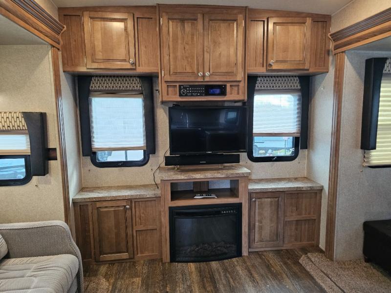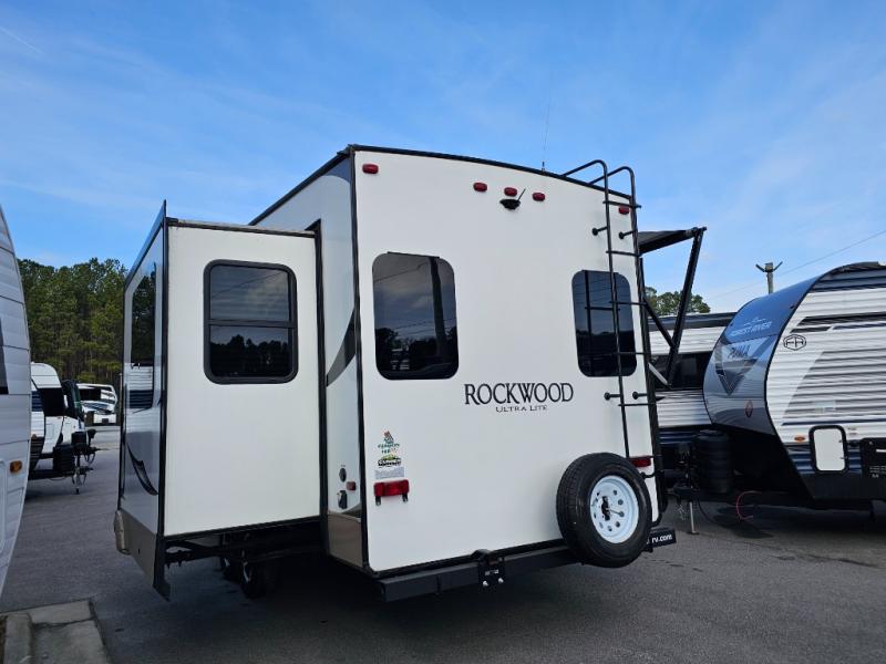 The Rockwood Ultra Lite 2650WS offers a comfortable and spacious layout in a lightweight fifth wheel design. With dual opposing slides, a rear entertainment center, and a private front bedroom, this pre-owned model is ideal for couples or small families looking for quality and convenience on the road.