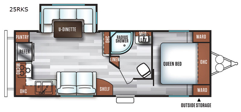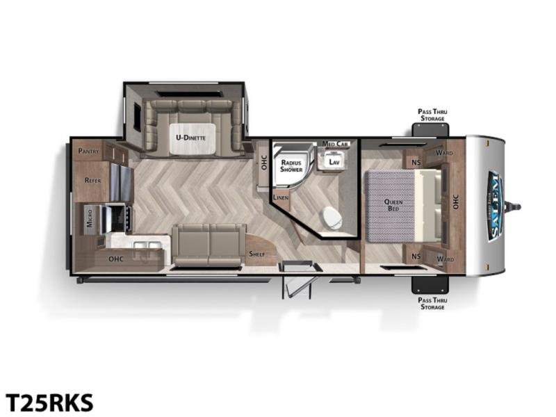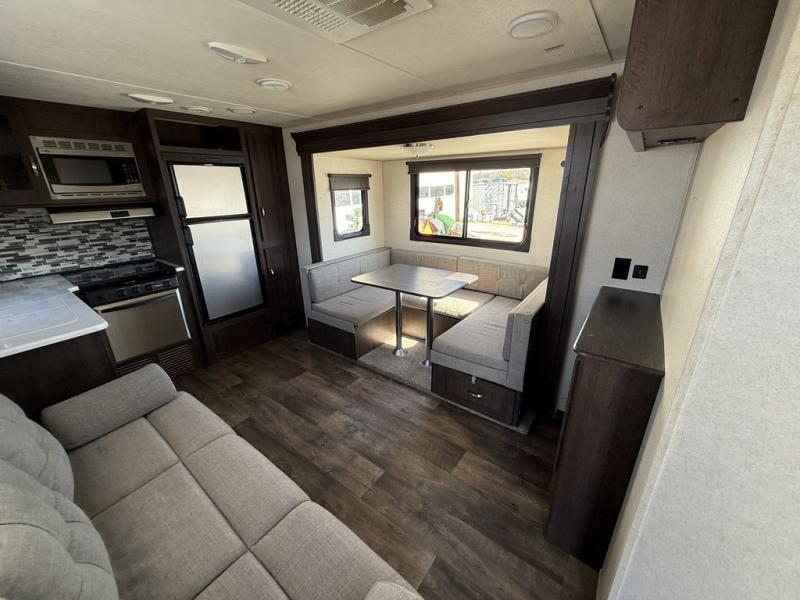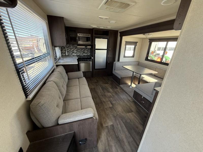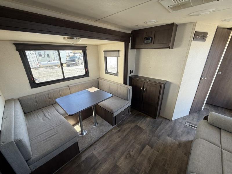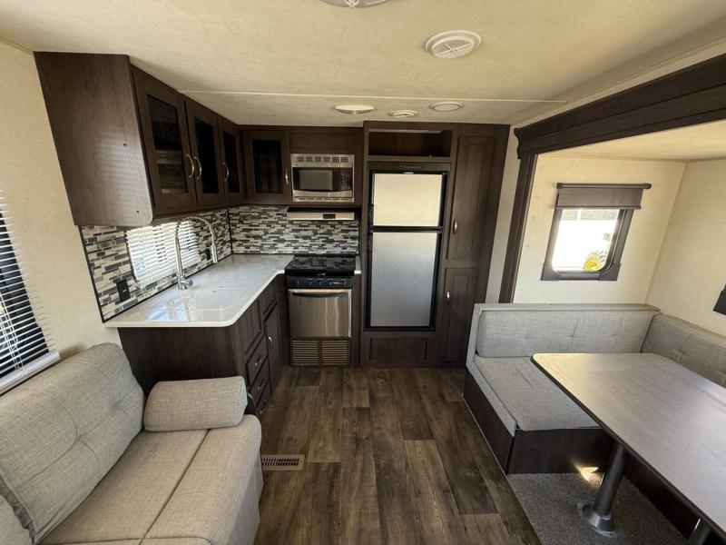 Are you ready to make one of the simplest decisions of your life? Come select this Salem 25RKS to be your home away from home! This is the ideal travel trailer for a couple. In the front bedroom there is a queen bed, plus a solid privacy door closes off the room from the rest of the trailer. The bathroom has a radius shower with a frosted glass. Enjoy your meals at the u-dinette, and all of the kitchen amenities are located along the rear wall and continue along the rear curbside wall, plus more!