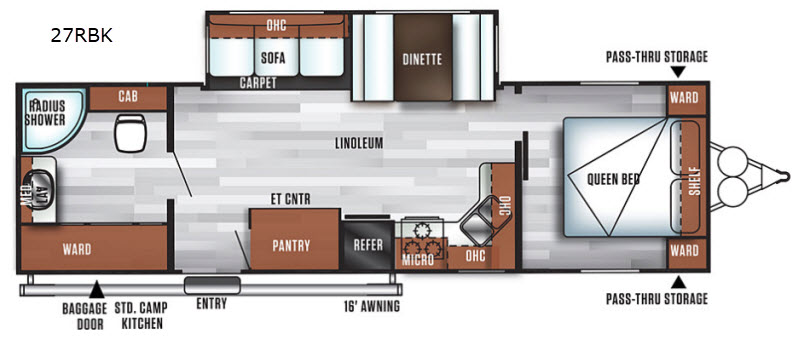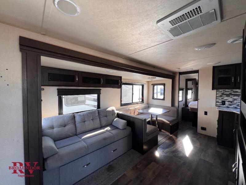 You will want your next camping trip to extend just a little bit longer when you choose to camp with this single slide out 27RBK Salem travel trailer! Along the rear of this model is the spacious bathroom. Here you will find a large wardrobe, radius shower, toilet, and a sink. You can plan to sit and visit at the sofa and enjoy your meals at the dinette. The kitchen amenities needed to fix your favorite meals are located along the curbside of the trailer. You will love the huge pantry for all of your canned goods! Outside there is a camp kitchen, pass through storage, and a baggage door, plus so much more!