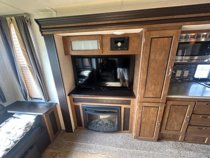 Come start your next camping trip with comfort and ease when you have this 27REI travel trailer by Forest River. This Salem model features dual opposing slide outs which help to open up the floor space. Along the rear wall there is a Jiffy sofa or you can choose an optional hide-a-bed. More seating can be found at the two recliners and dinette within the curbside slide out. In the evening you can have a fire in the fireplace while you watch TV at the entertainment center. Everything that you need to create your meals can be found in this kitchen from the three burner range to the island with a double sink. Outside there are two awnings - 9' and 11' which helps to provide as much shade as possible for you!