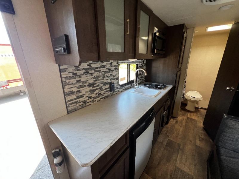 A great camping trailer for a young family with little ones. This Salem FSX features all the necessities to enjoy camping in all of your favorite locations. Head to the state park near a lake and spend your day by the beach playing in the water and sand. When back at camp you can shower and get cleaned up, enjoy a campfire and roast hot dogs and s'mores, or hang out inside. You can easily whip up meals and snacks inside at the complete kitchen, and you can enjoy meals and games at the 36" dinette. You will find ample storage throughout with overhead cabinets, a pantry, and storage shelf that runs the width of the camper in front. At night, turn in and get a great night's sleep on the queen bed up front, or twin bunks in the rear corner. The dinette can even double as sleeping space for one more tired camper.