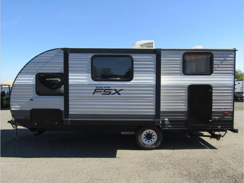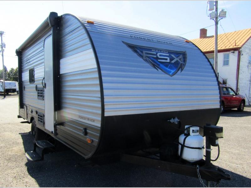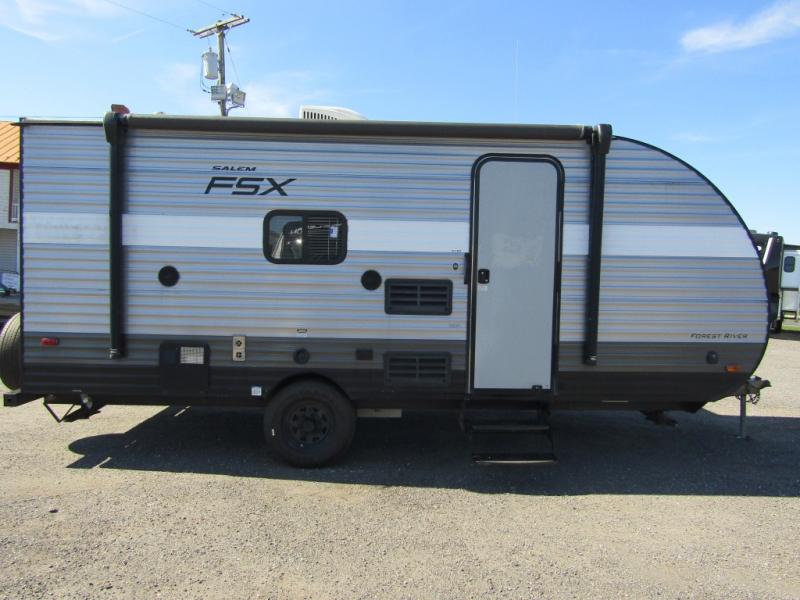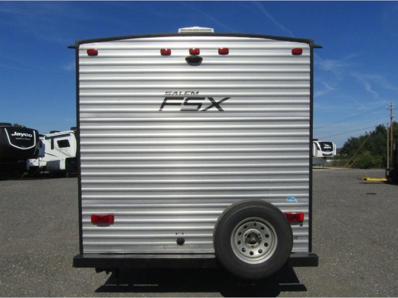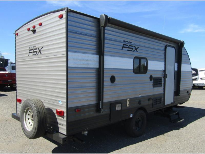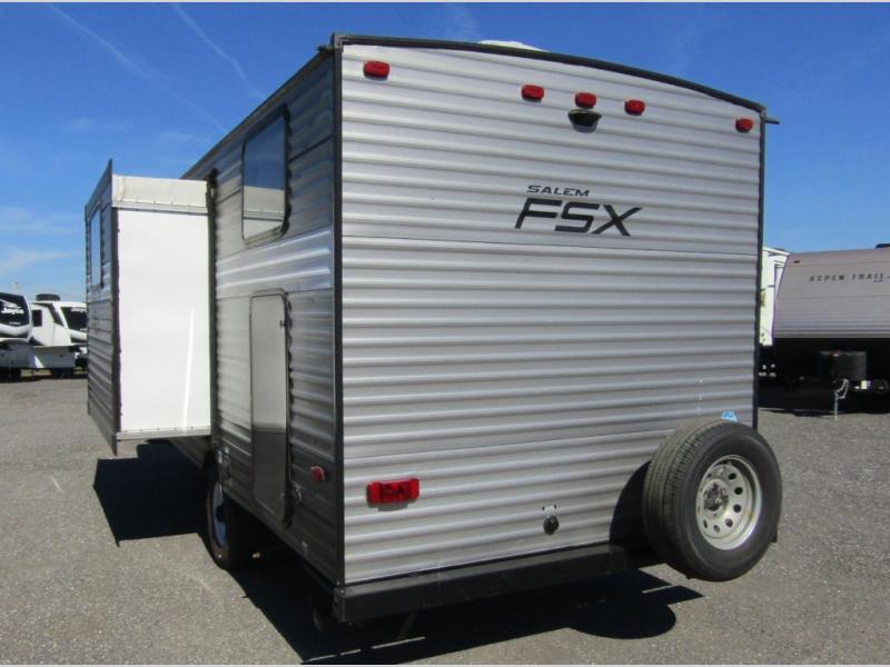 In any Salem FSX travel trailer by Forest River you can count on having fun while you enjoy any outdoor adventure away from home. These full-featured lightweight units are easy to tow, and offer a modern residential living space including a queen sized bed in each unit, bunks in select models, and there is also a couple of toy hauler units for those who can't leave home without a few big toys tagging along! These trailers are all a full 7' 6" wide with full interior stand up height. Depending on the model you select, you will find either a side or roof mount AC for added comfort in warmer climate as well. So, for a value packed unit that is lightweight and feature rich for its size, choose a Salem FSX travel trailer and head out for a weekend of outdoor fun!