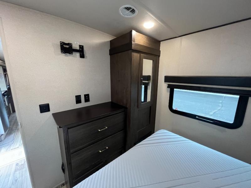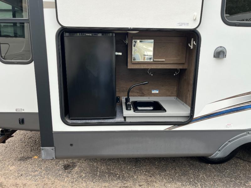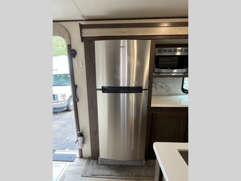 When you want time away from home, but yet want the comforts of home, then choose a Salem Hemisphere GLX travel trailer by Forest River. These models have plenty of residential features such as a stainless steel Dometic double door refrigerator, an under mount sink, stain resistant carpet in the living room and Beau plank wood linoleum in the kitchen. Along the exterior you will find an aerodynamic front cap with LED light strip, gel coated fiberglass exterior, and marine grade exterior speakers with a blue LED light. The One Touch electric awning provides plenty of shade and allows you to instantly have a nice outdoor living space and more!