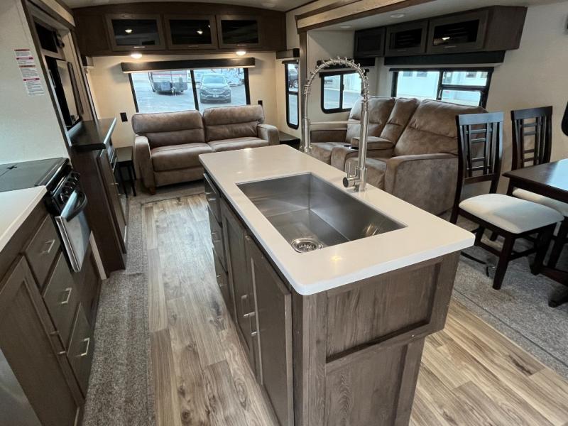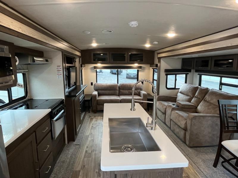 Load up your family and see just how fun camping can be with this double slide out Salem Hemisphere GLX 272RL. This model offers plenty of conveniences such as a fireplace, theater seats, an island with a sink and a high-rise faucet, plus a jumbo dinette. Outside you can enjoy the shade from the 21' awning plus there is a large pass through storage area for all of your outdoor camping gear. You can even choose to add the optional exterior kitchen which features an electric refrigerator and a sink.