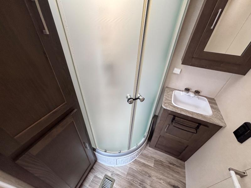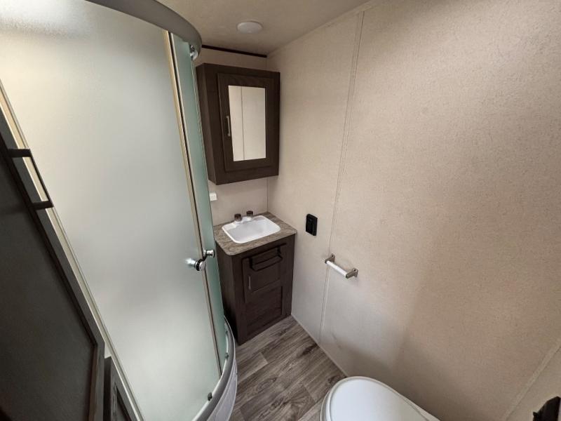 When you want time away from home, but yet want the comforts of home, then choose a Salem Hemisphere GLX travel trailer by Forest River. These models have plenty of residential features such as a stainless steel Dometic double door refrigerator, an under mount sink, stain resistant carpet in the living room and Beau plank wood linoleum in the kitchen. Along the exterior you will find an aerodynamic front cap with LED light strip, gel coated fiberglass exterior, and marine grade exterior speakers with a blue LED light. The One Touch electric awning provides plenty of shade and allows you to instantly have a nice outdoor living space and more!