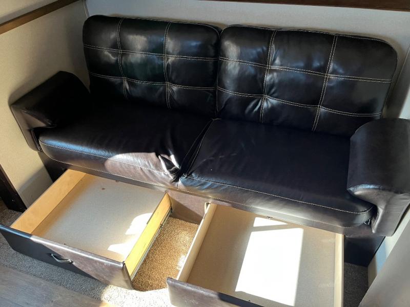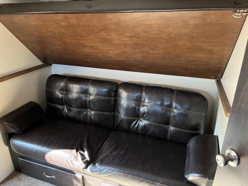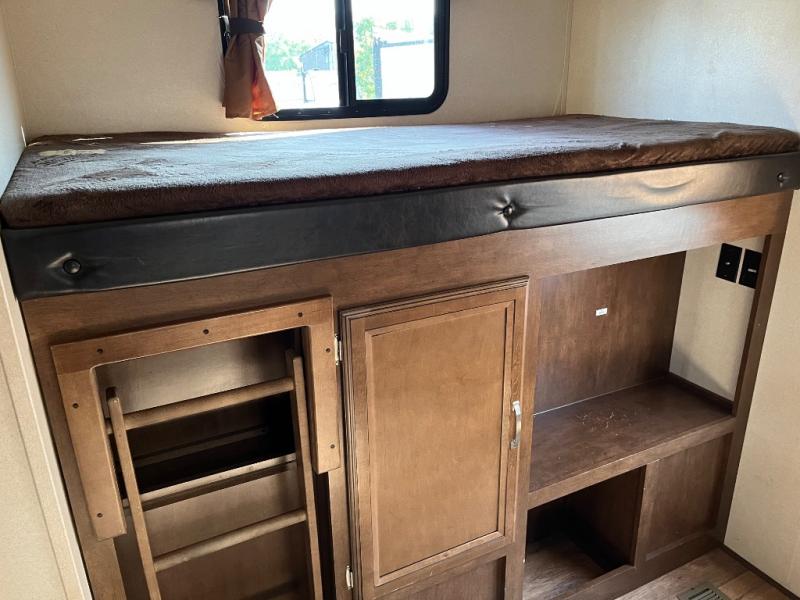 Imagine the perfect travel trailer for you and your family! Now picture yourself camping at your favorite campground with luxurious and residential features just steps away. From the queen bed and convenient walk-through bathroom, to the kids having their own room with a half bath including a tub, and a set of bunks, plus a trundle bed. There is even floor space to play games in the bunkhouse thanks to the slide out. You can make warm meals in the L-shaped kitchen and relax on the sofa or dinette when you aren't outside enjoying the shade from the 20' awning. Start living your imaginations!