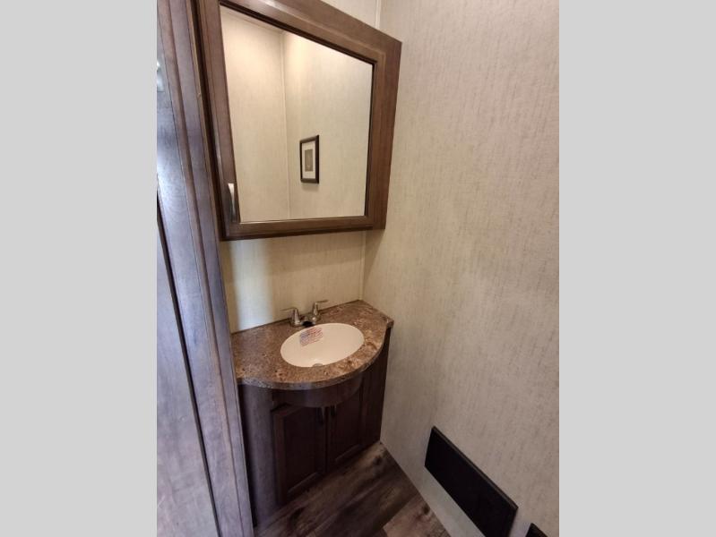 Get ready to be impressed with all of the features throughout this triple slide out Sandpiper 378FB fifth wheel by Forest River. This model has a convenient half bathroom off of the kitchen area. The spacious interior makes it easy to do a little entertaining with this model. Within the curbside slide out there is an entertainment center and a fireplace. Plenty of seating can be found at the hide-a-bed sofa, the theater seats, or at the free-standing dinette. In the master bathroom there are two sinks so now it is even easier to get ready for the day. The exterior kitchen and 20' awning makes it easier to spend more time outdoors. Now you can relax under the awning while watching your children play!