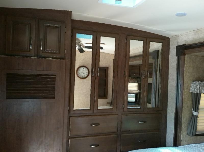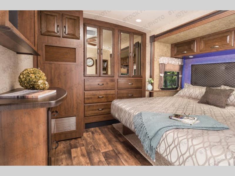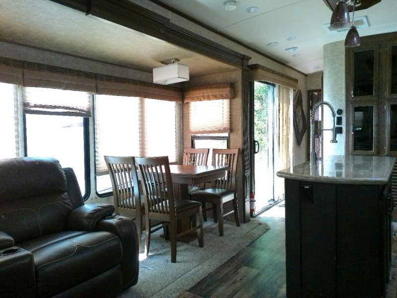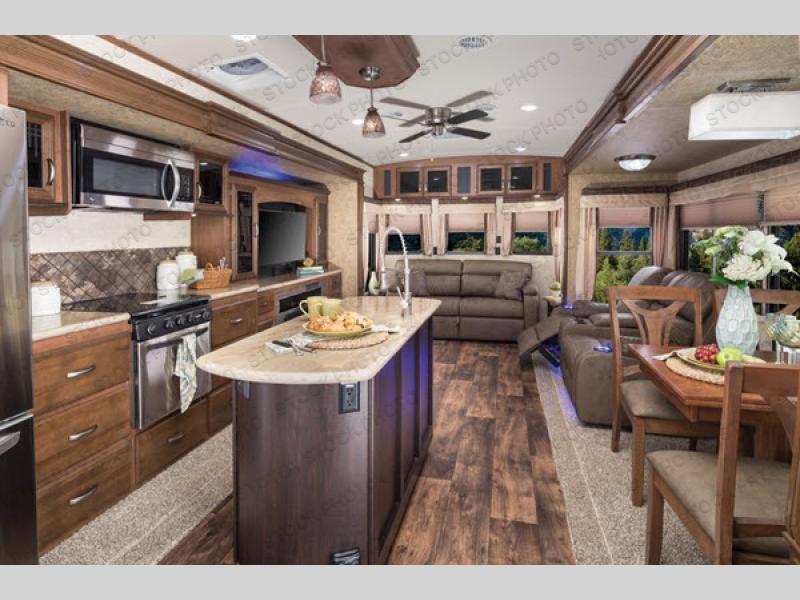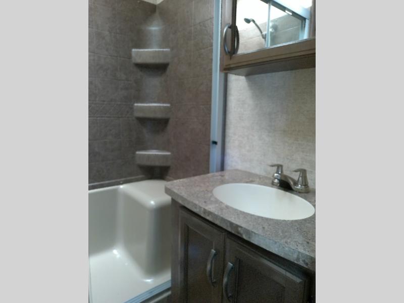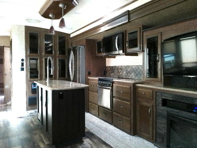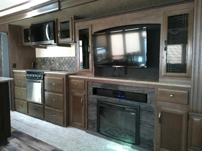 When you are ready for your next vacation, then choose this Sierra 401FLX destination trailer. You will love all of the space throughout from the large pantry to the overhead cabinets. In the living area there is a 40" LED TV plus a fireplace, and in the kitchen enjoy the workable space that the island features plus the storage space for your perishables in the 20 cu. ft. house refrigerator. Throughout this model there is either Beauflor rustic plank linoleum flooring or stain resistant carpet which comes in handy on those rainy/muddy days!