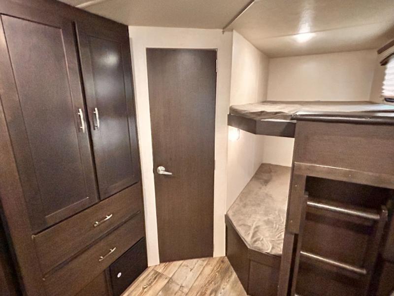 A rear set of bunk beds, booth dinette and sofa, single slide out, and many more features are found on the 270BHS Sonoma Explorer Edition by Forest River. It features double entry doors for a smooth flow of traffic in and out of the unit. The rear bath gives you the privacy you desire as well as more space throughout. When you're ready to retire for the night, head into the front private bedroom which has a wardrobe, shelving, and even a laundry chute!