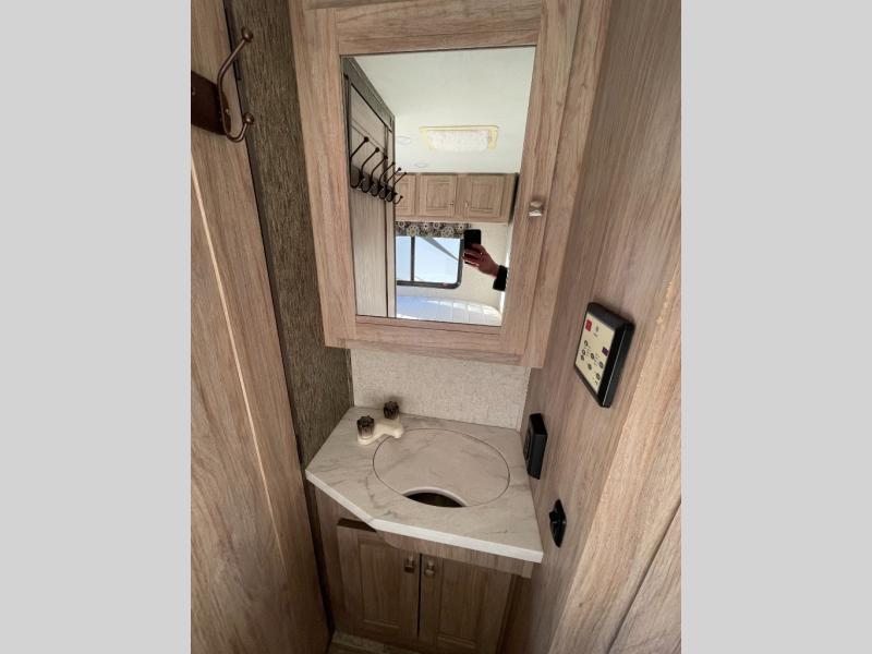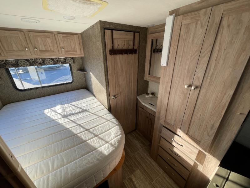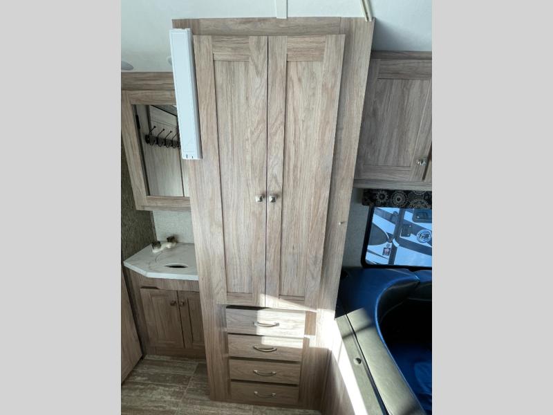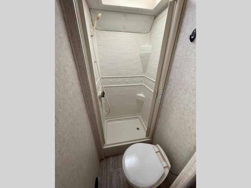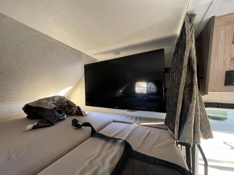 Take model 2350LE out to your next tailgate and have the amenities of home with you. When the game is over, just pack up your things, hop in, and head home! If there isn't a game this weekend, head to your favorite camping spot and set up camp. If you are camping this weekend, you will have sleeping space for up to six so grab a couple of your friends and enjoy the great outdoors. You have a queen bed in the rear next to the bath, there is a u-shaped dinette that will fold down into a sleeping space for up to two individuals, and then there is a bunk above the cab.