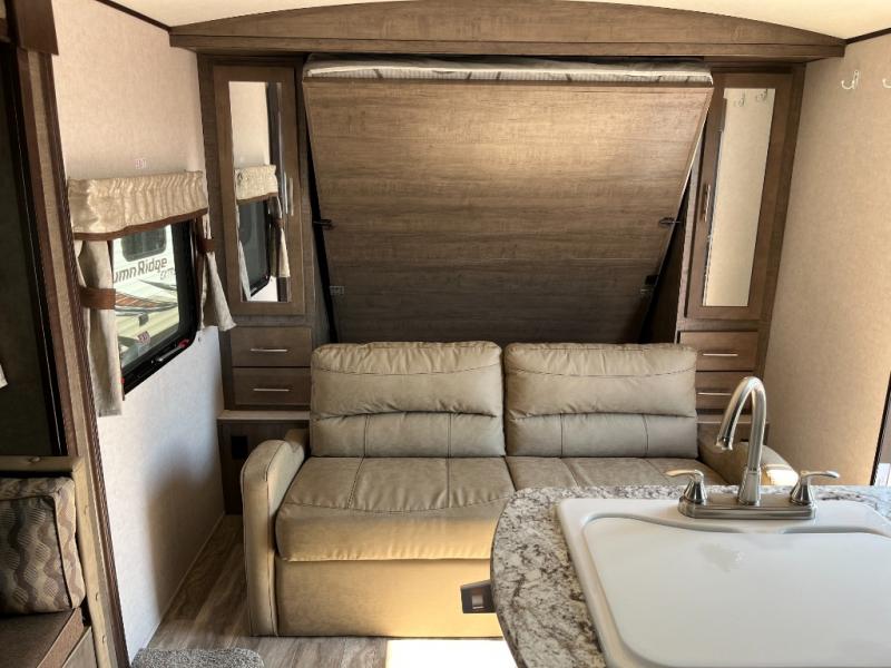 Your family of four will enjoy any camping trip with this single slide out 200MBLE Surveyor travel trailer. Depending on when you enter this model will determine if you see the sofa or the 60"x80" Murphy bed set up. Along either side of the bed there are wardrobes with storage. Throughout this model there are modern Shaker style cabinets where you can store dishes and food. Enjoy your meals at the 75" dinette and at night this area easily converts into additional sleeping space. The rear bathroom is not only spacious but also a convenient place to get ready for the day and more!
