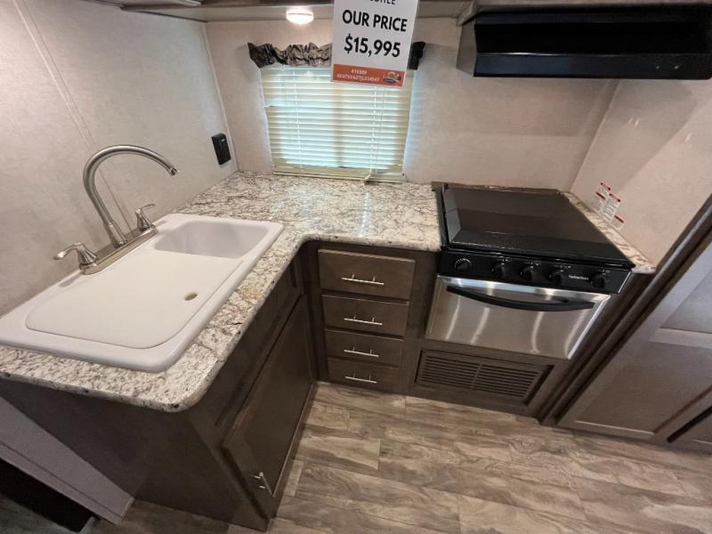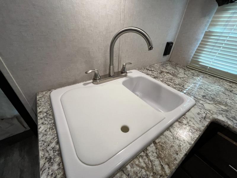 Come see just how fun your next camping trip can be with your family of eight with this Surveyor 248BHLE travel trailer. The outside kitchen is a great spot to fix a quick snack or your evening meal, plus you will enjoy the shade of the 17' awning. Inside there is a private front bedroom for mom and dad. The kids will enjoy the oversized double bunk beds which sleep four people. The slide out along the roadside helps to open up the floor space. Within the slide out there is an 84" dinette where you can enjoy your meals and at night you can easily convert this area into additional sleeping space.