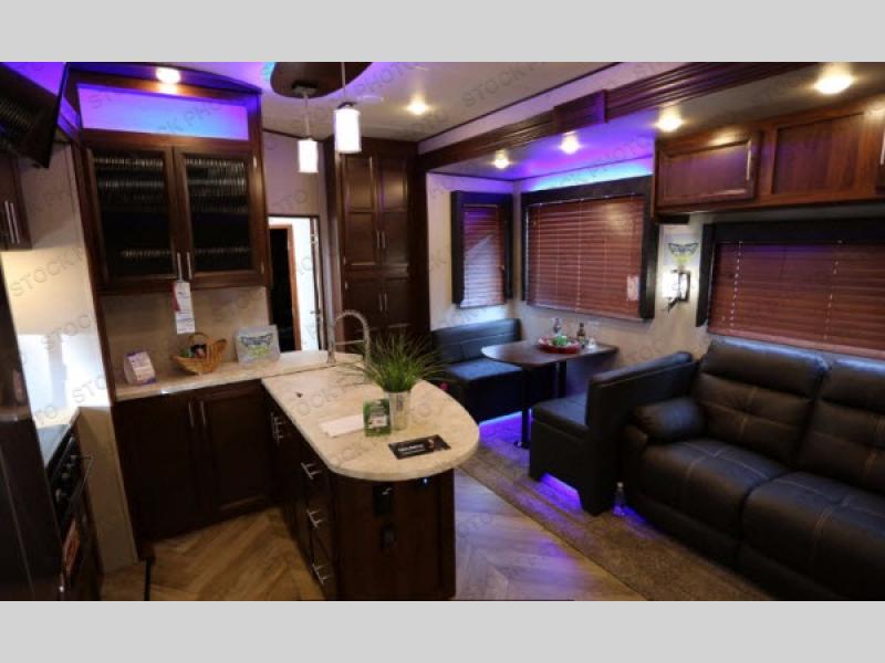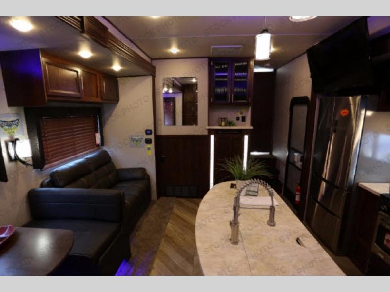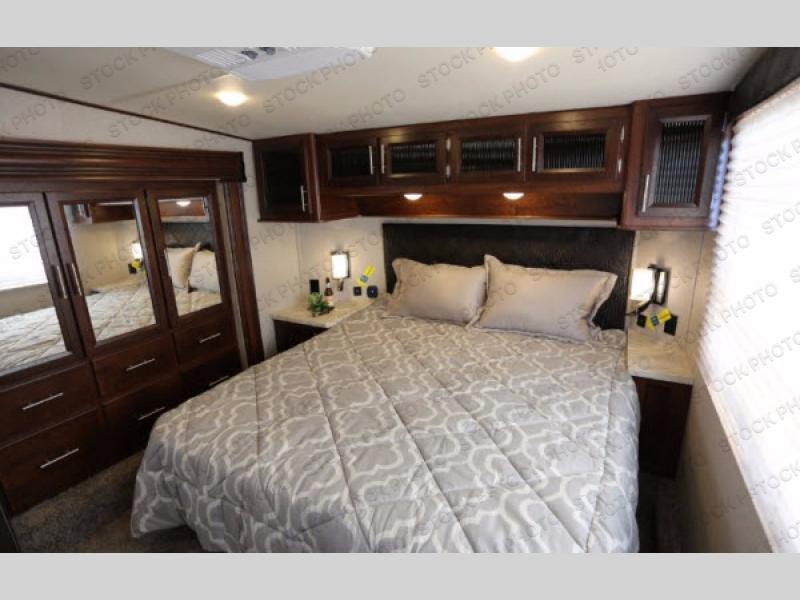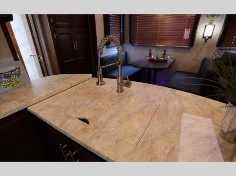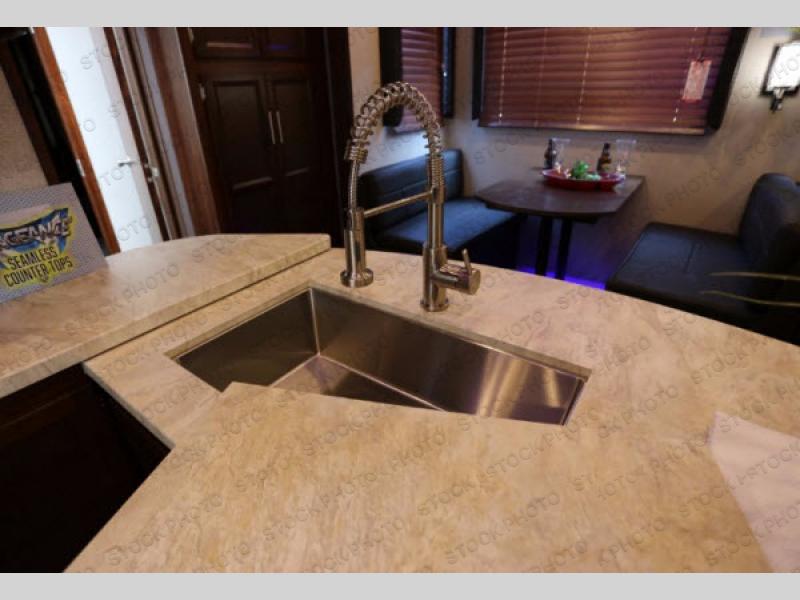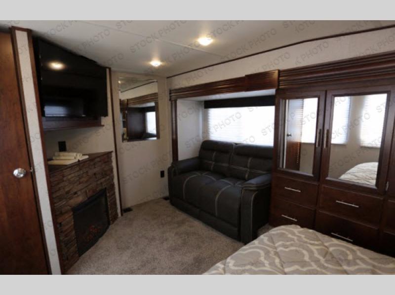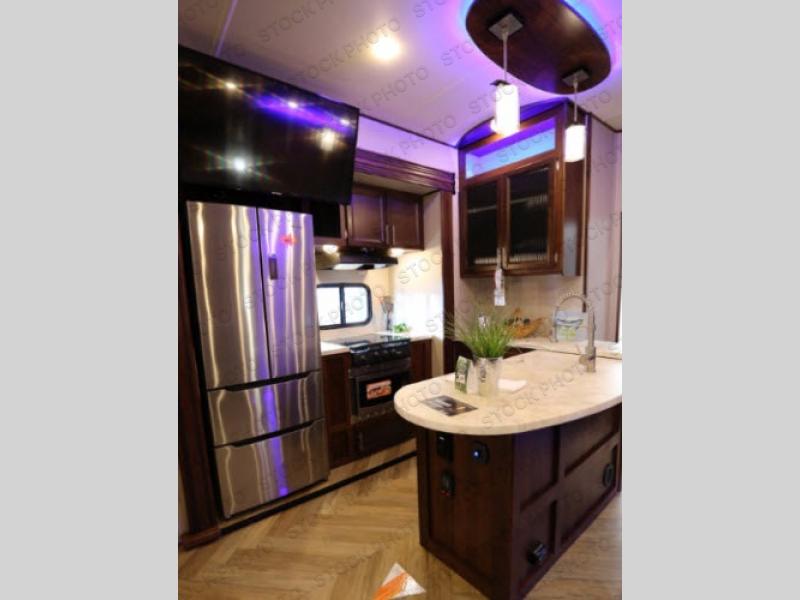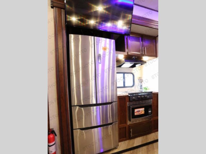 You won't believe the comfort and class that this Vengeance toy hauler provides. The front, private master bedroom is a true dream complete with a king-size bed, large wardrobe, sofa, and even a fireplace. Additionally, you will have plenty of room in the kitchen to cook up delicious meals during every vacation because of the extra room that three slides provide.