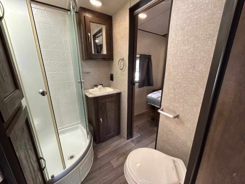 Are you ready to pack a whole lot of fun in a great travel trailer? Well, come choose a Forest River Vibe! You will love the stylish tri-tone gel coat fiberglass with upgraded graphics package, and the extra-large aluminum-framed pass through storage area for your outdoor gear. On the inside you will find that each model offers cathedral ceilings, and a Bluetooth MP3/DVD/CD/FM with surround sound. The Limited Showstopper features include a Denver pillowtop queen mattress, LED awning light, and Blue LED ground effect lighting, plus more! Choose your favorite model today!