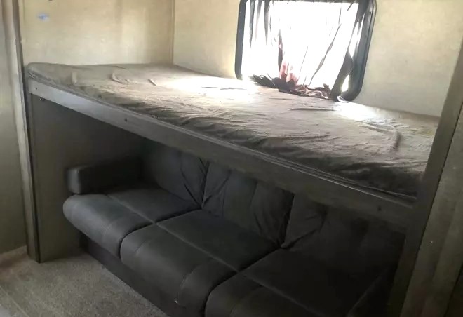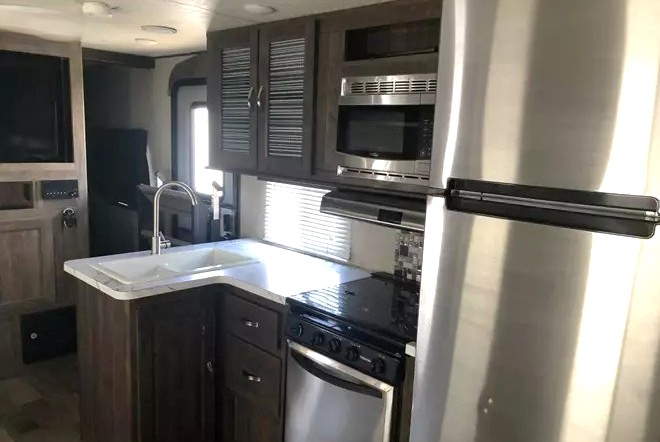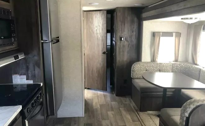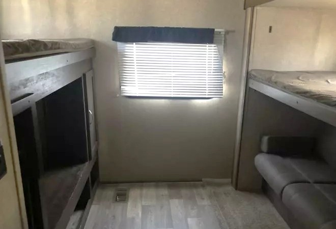 Easily load up your family and head out to your favorite campground with this Vibe Extreme Lite 306BHS travel trailer. Just imagine the kiddos relaxing in their own bunkhouse in the rear of the trailer, and the bathroom is just outside the door. Inside the bath you will find the second entry into the trailer as an added convenience for quick access from outside. You all can visit while sitting at the U-shaped dinette and sofa when not outside exploring. The chef will love the style of the kitchen which features a stainless steel package, solid surface countertops, a decorative backsplash, and all the appliances needed to make meals. You might even choose an optional kitchen outside. Don't worry about missing any conveniences and comforts of home while you are staying in this double slide out Vibe Extreme Lite!