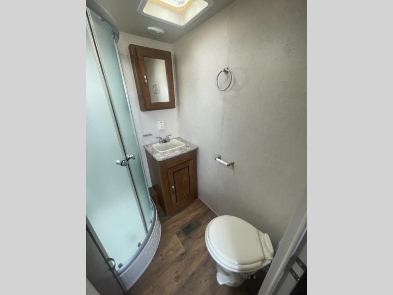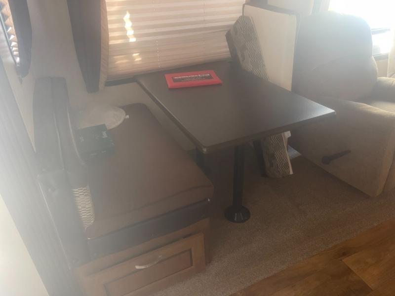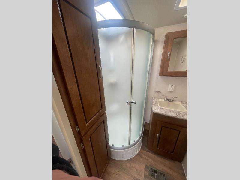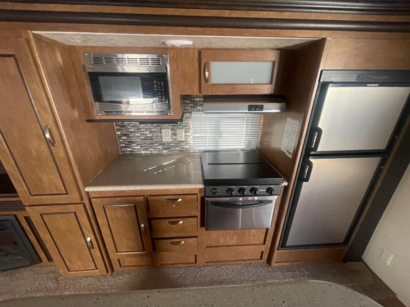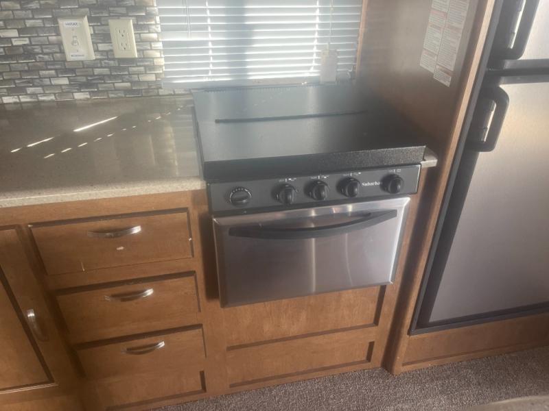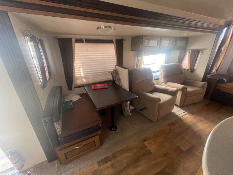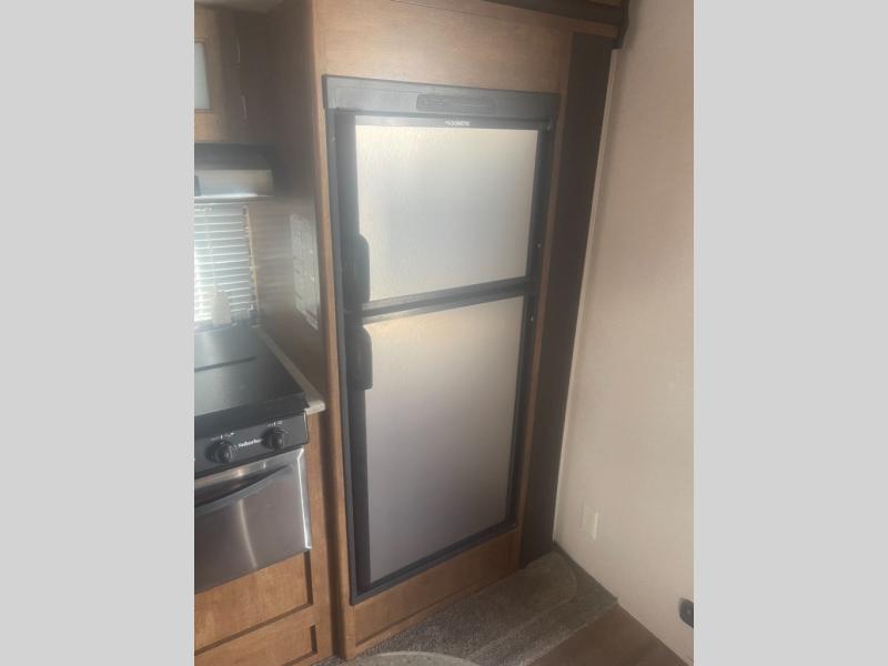 These Wildwood travel trailers are something to take a look at! Inside you have 27" overhead cabinets giving you plenty of space for storing the items you take with you. There is even a large pots and pans drawer under the dinette. Storage under the bed is an added perk, so there is no need to worry about how much you bring with you. The triple seal slide out system keeps all the rain and excess water out, and all of the heat or cool air in. The safety glass windows are there to look nice and also if they were to break you won't have to worry about anyone getting cut. Outside these travel trailers, the tires are filled with nitrogen, and the frames are built with a powder coated I-beam frame.