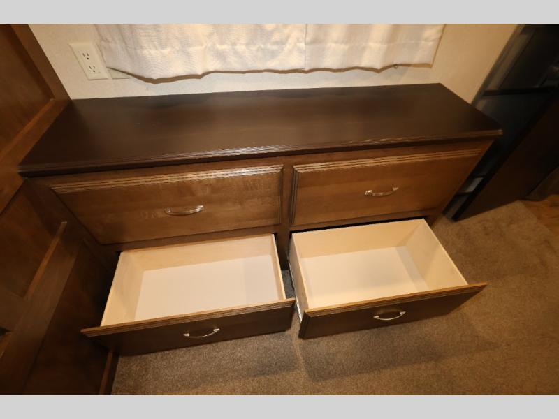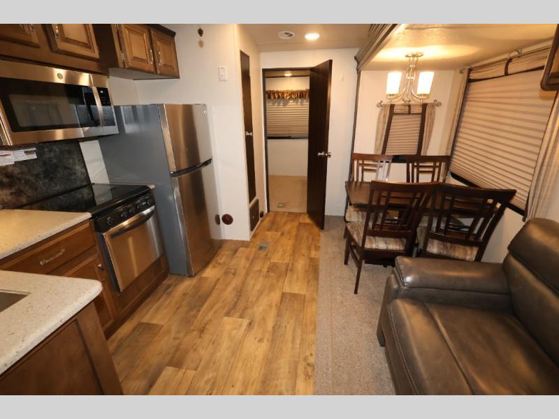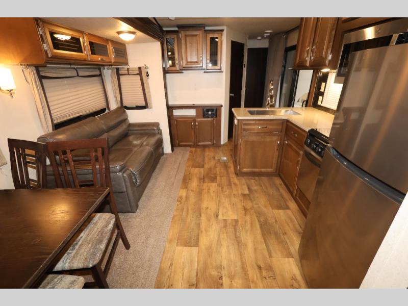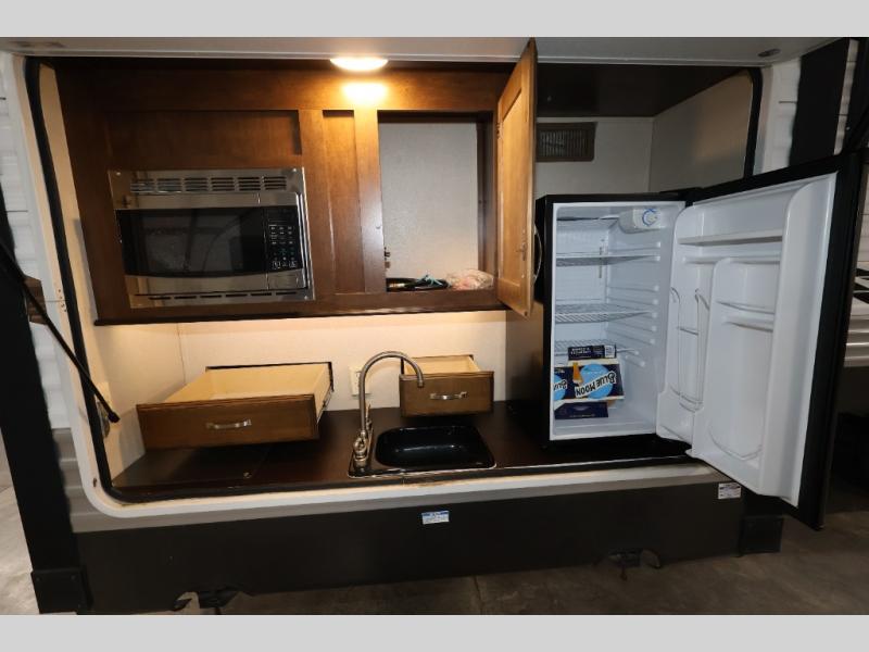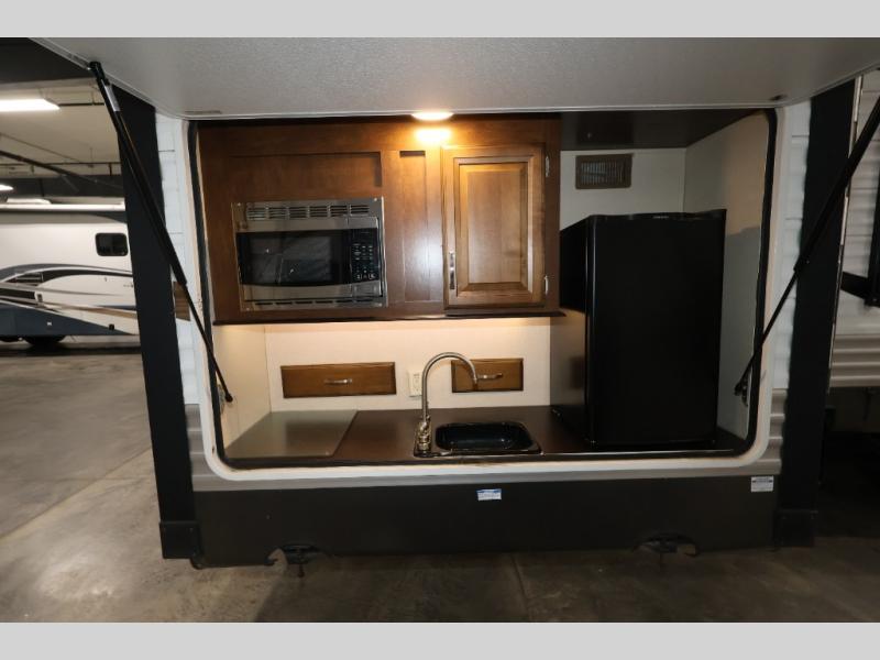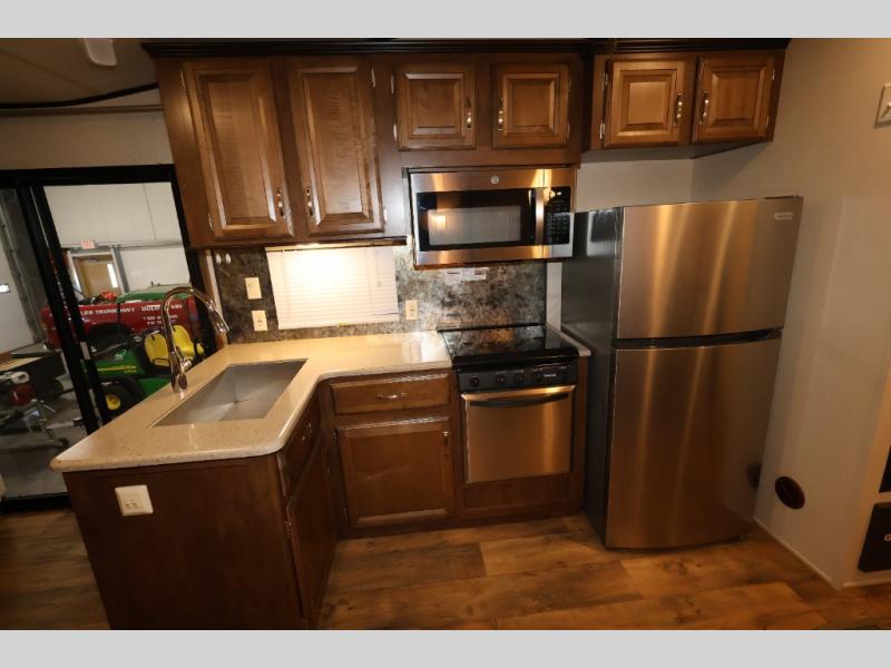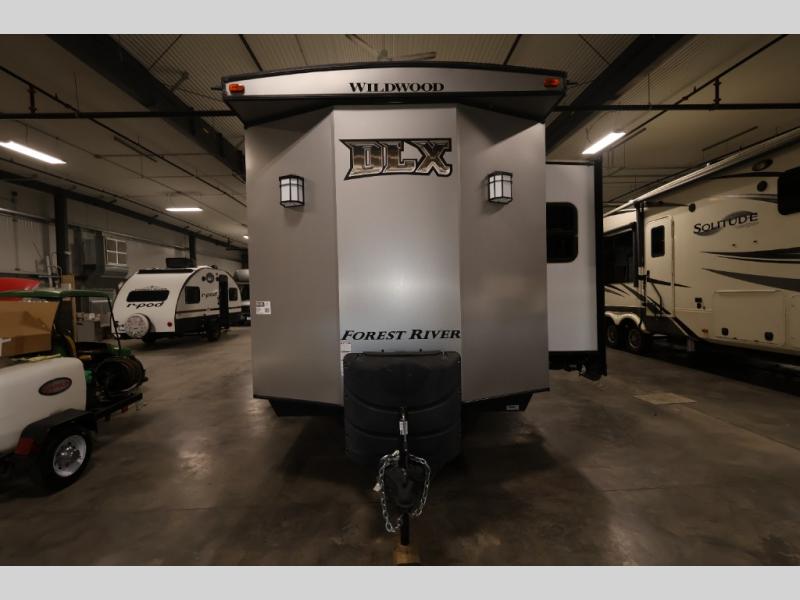 With a Wildwood DLX destination trailer you can choose to park your unit at a campground longer than your typical camping trip. These models have so much to offer from the Bluetooth sound bar with TV hook-up to the Beauflor vinyl slip resistant linoleum, plus in the kitchen there is a new Whirlpool 1.7 cu. ft. oversized microwave and a one piece, water resistant, designer backsplash! At night come rest on the Denver 9" pillowtop mattress, plus there is extra storage space with the dresser drawers. If the features are not enough for you then you many want to add the Limited Time Program Options which include an exterior white LED light strip, central vacuum system, LG solid surface kitchen and bath counter tops, plus more!