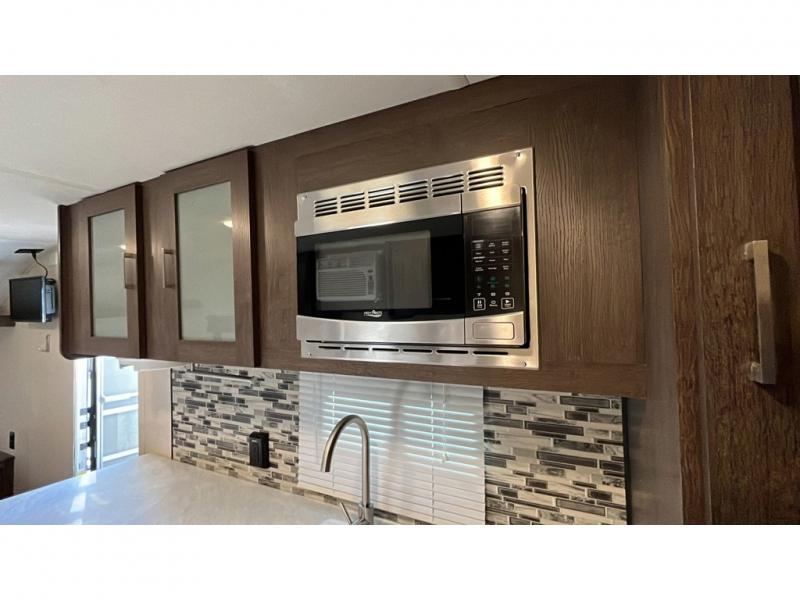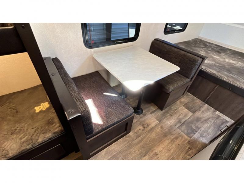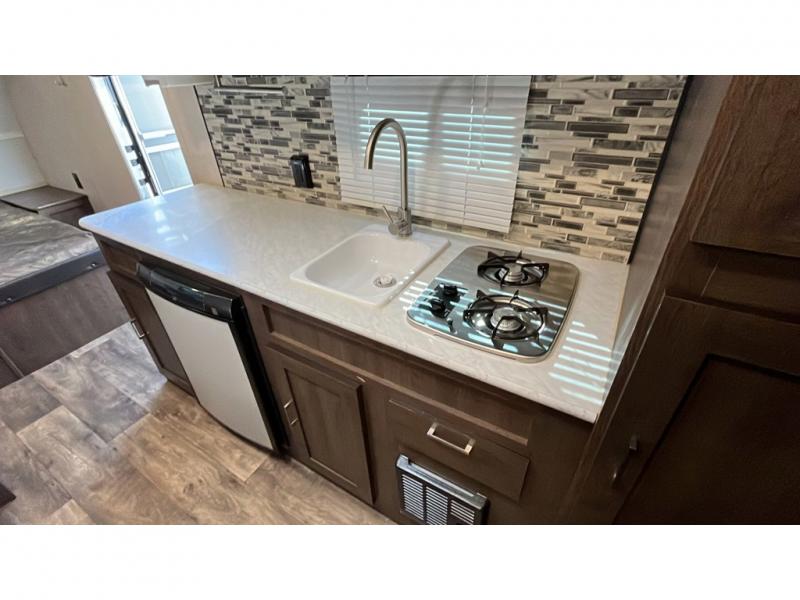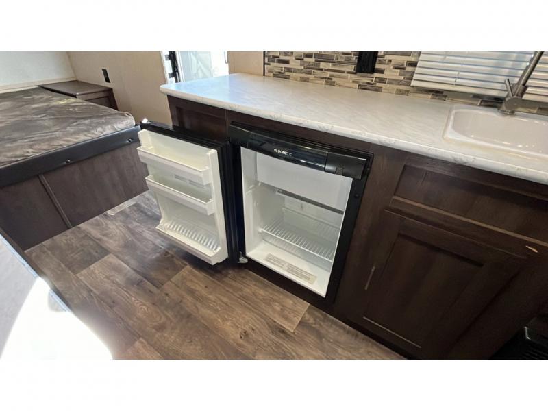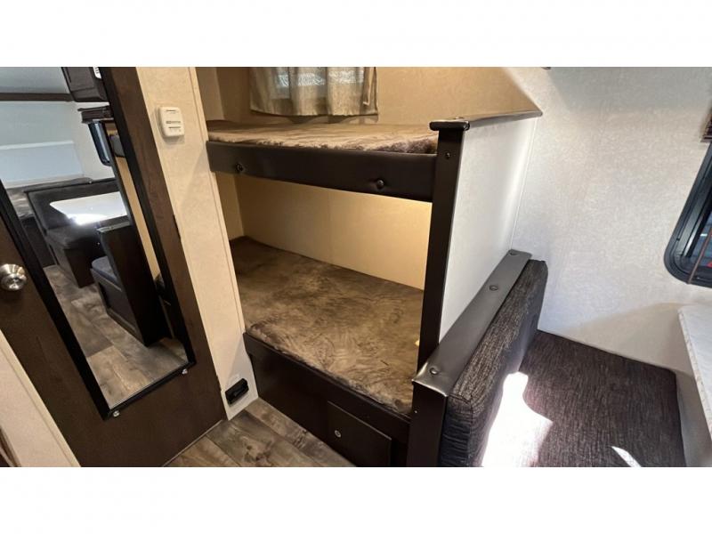 A great camping trailer for a young family with little ones. This Wildwood FSX features all the necessities to enjoy camping in all of your favorite locations. Head to the state park near a lake and spend your day by the beach playing in the water and sand. When back at camp you can shower and get cleaned up, enjoy a campfire for roasting hot dogs and s'mores, or hang out inside. You can easily whip up meals and snacks inside at the complete kitchen, and you can enjoy meals and games at the 36" dinette. You will find ample storage throughout with overhead cabinets, a pantry, and storage shelf that runs the entire width of the camper in front. At night, turn in and get a great night's sleep on the queen bed up front, or twin bunks in the rear corner. The dinette can even double as sleeping space for one more tired camper.