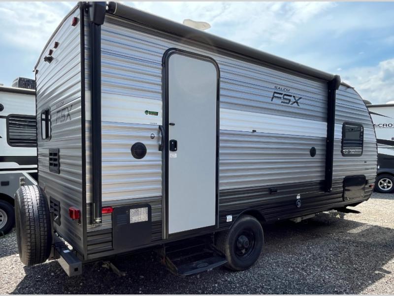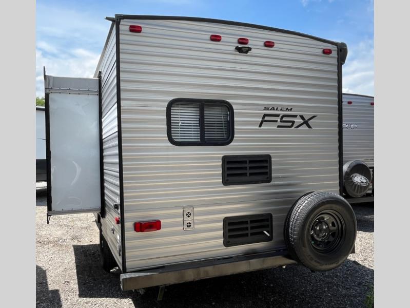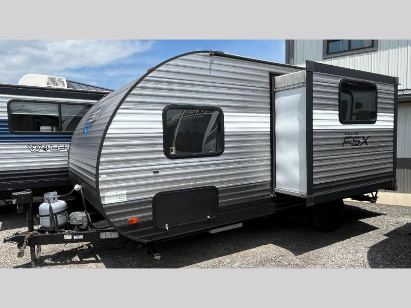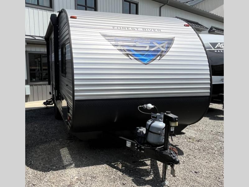 In any Wildwood FSX travel trailer by Forest River you can count on having fun while you enjoy any outdoor adventure away from home. These full-featured lightweight units are easy to tow, and offer a modern residential living space including a queen sized bed in each unit, bunks in select models, and there is also one toy hauler unit for those who can't leave home without a few big toys tagging along! These trailers are all a full 7' 6" wide with full interior stand up height. You will also find a roof mount AC for added comfort in warmer climate as well. So, for a value packed unit that is lightweight and feature rich for its size, choose any Wildwood FSX travel trailer and head out for a weekend of outdoor fun!