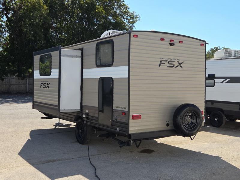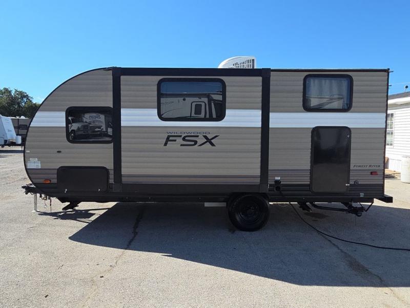 In any Wildwood FSX travel trailer by Forest River you can count on having fun while you enjoy any outdoor adventure away from home. These full-featured lightweight units are easy to tow, and offer a modern residential living space including a queen sized bed in each unit, bunks in select models, and there is also one toy hauler unit for those who can't leave home without a few big toys tagging along! These trailers are all a full 7' 6" wide with full interior stand up height. You will also find a roof mount AC for added comfort in warmer climate as well. So, for a value packed unit that is lightweight and feature rich for its size, choose any Wildwood FSX travel trailer and head out for a weekend of outdoor fun!