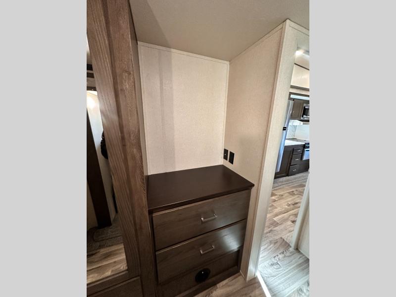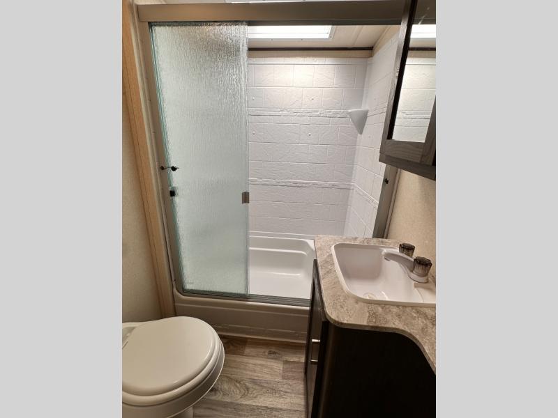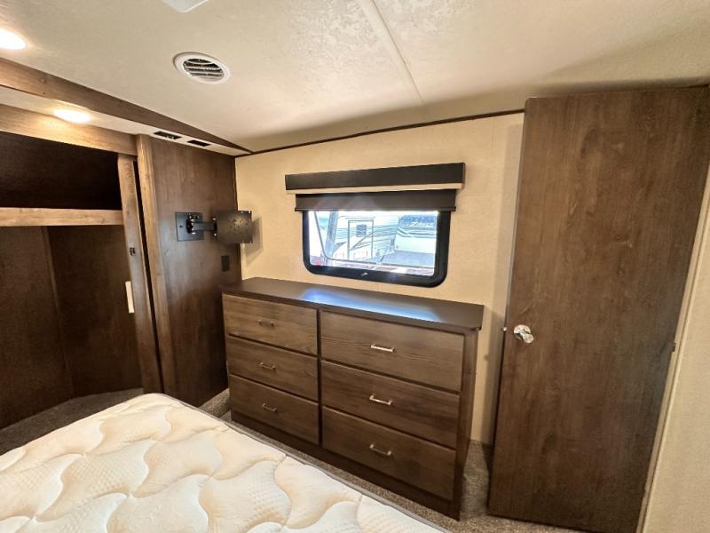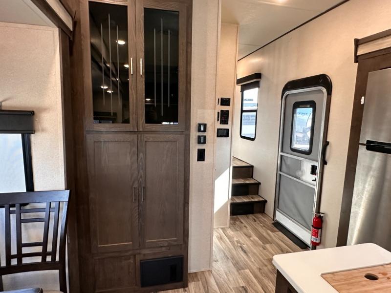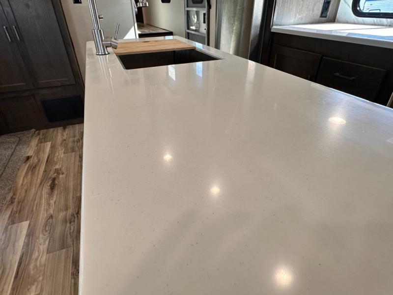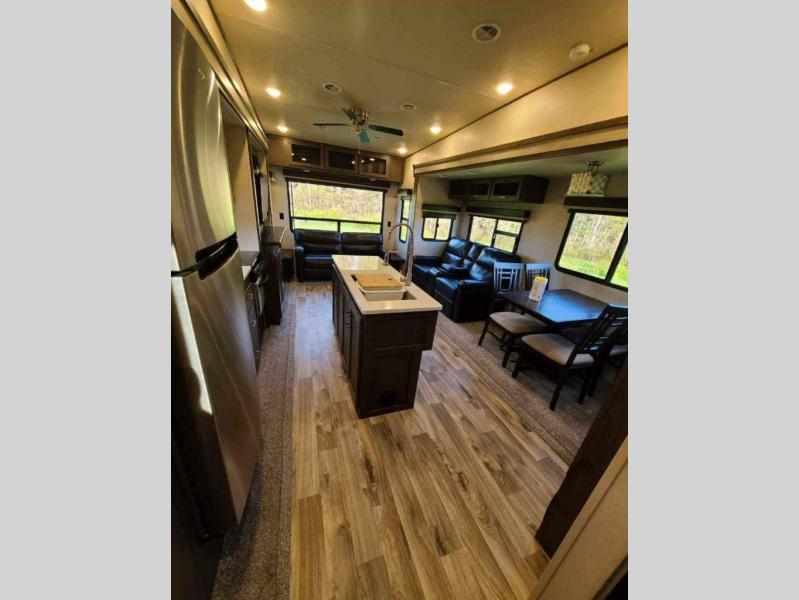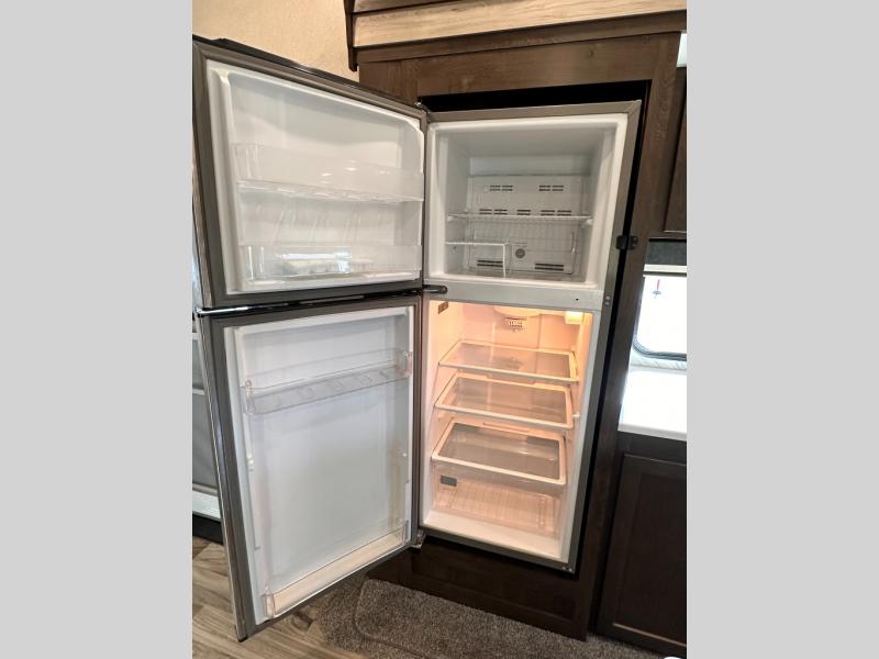When you want time away from home, but yet want the comforts of home, then choose a Wildwood Heritage Glen LTZ fifth wheel by Forest River. These models have plenty of residential features such as a stainless steel Dometic double door refrigerator, an under mount sink, stain resistant carpet and Beau plank wood linoleum. Along the exterior you will find an aerodynamic front cap with LED light strips, gel coated fiberglass exterior, and marine grade exterior speakers with a blue LED light. The One Touch electric awning provides plenty of shade and allows you to instantly have a nice outdoor living space and more!