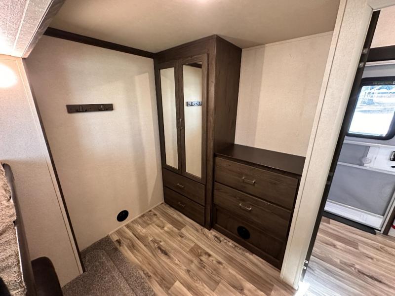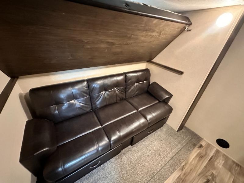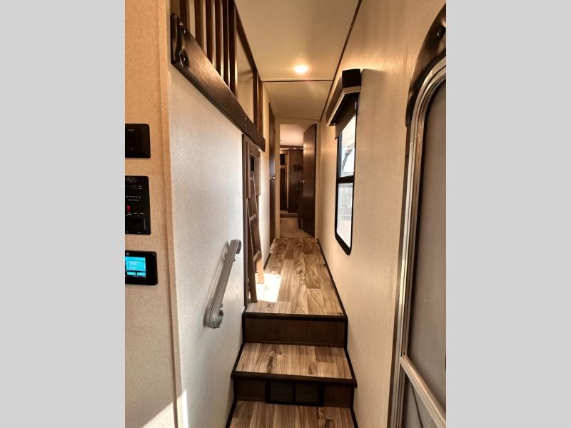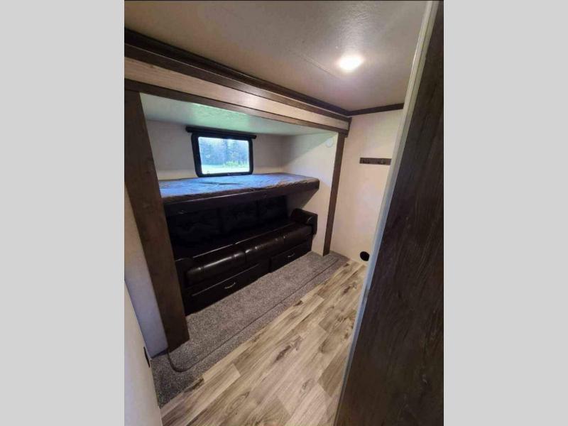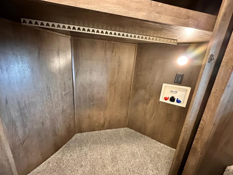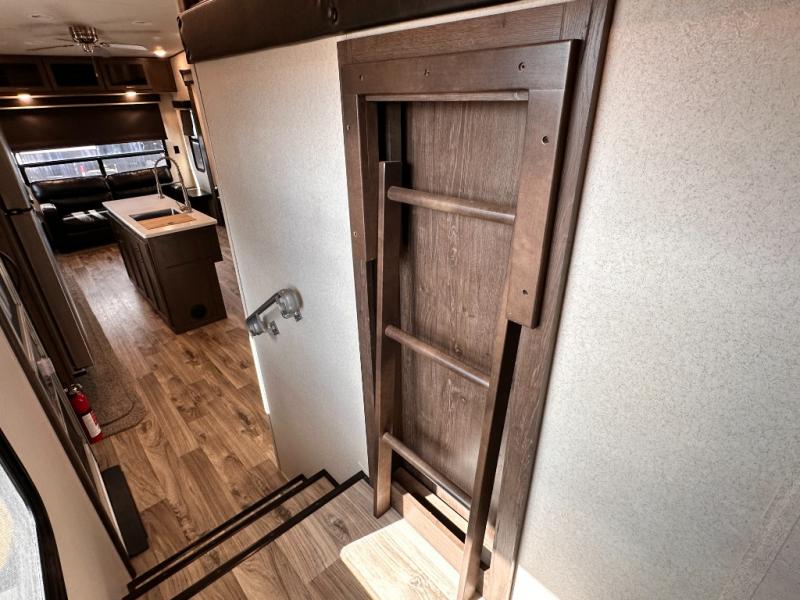 For your next family vacation plan to make plenty of memories with this Forest River 370BL Wildwood Heritage Glen LTZ fifth wheel. With quad slide outs there is enough room for your crew to spread out and enjoy all of the interior space. In the combined kitchen and living area your family can enjoy all being together with plenty of seating options at the tri-fold sofa, theater seating, or dinette. Meal prep is a breeze with this kitchen or you can choose to do it outside if you add the optional exterior kitchen. When your kids need their own space they can go and unwind in the bunkhouse. Here you will find a slide out with an upper bunk, twin bed, and a trundle bed. Across the room there is a desk, wardrobe, and a TV hook-up. Above this bunkhouse there is a loft which is sure to be a draw for your kids! For mom and dad come enjoy the spacious front bedroom where there is a custom king bed, dresser, and large front closet that has been prepped for an optional washer and dryer, plus so much more!