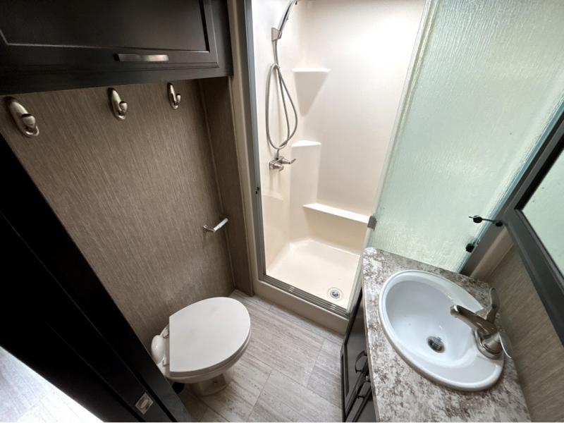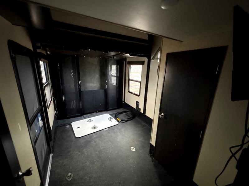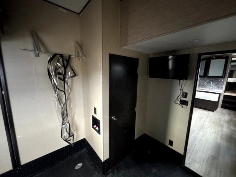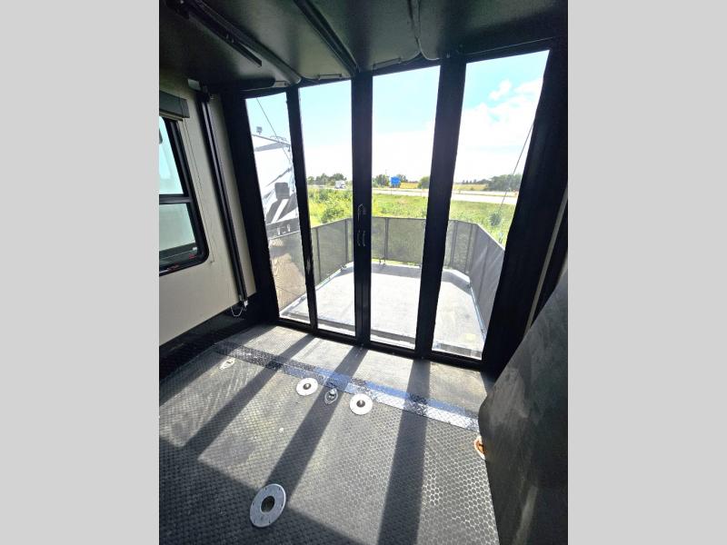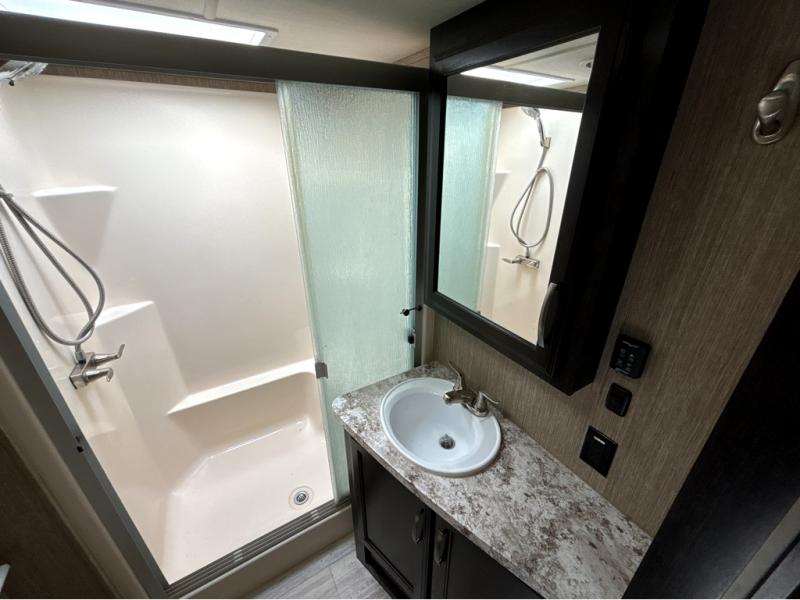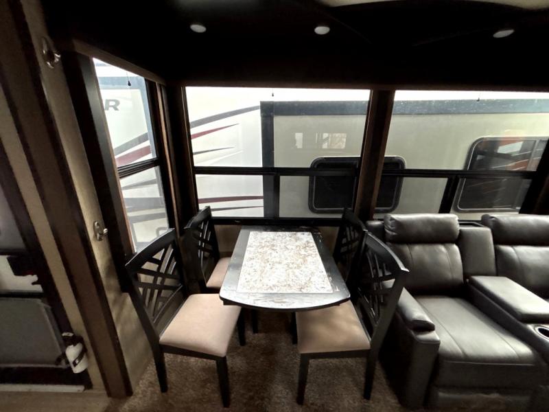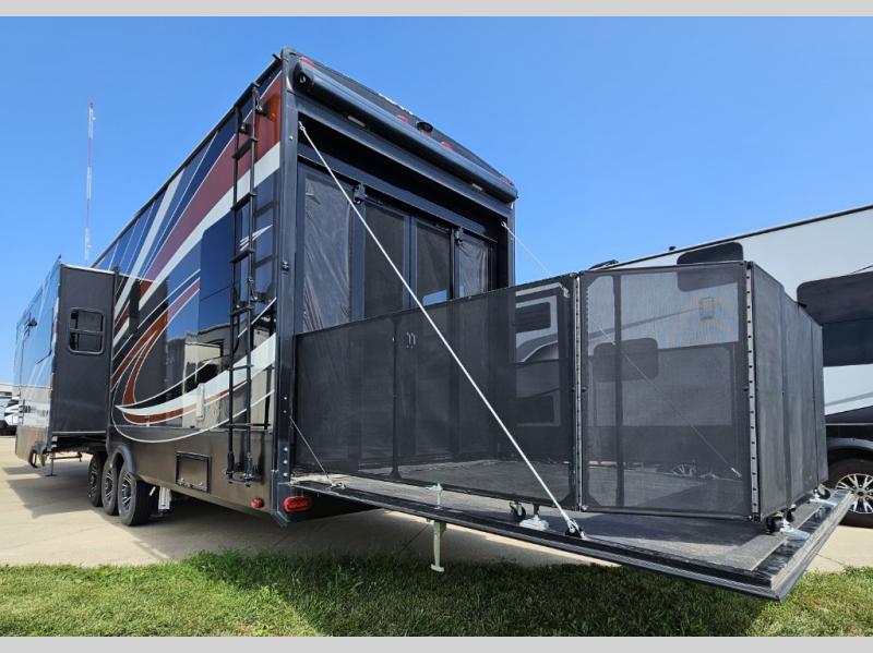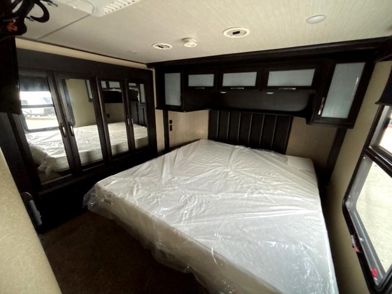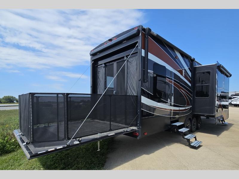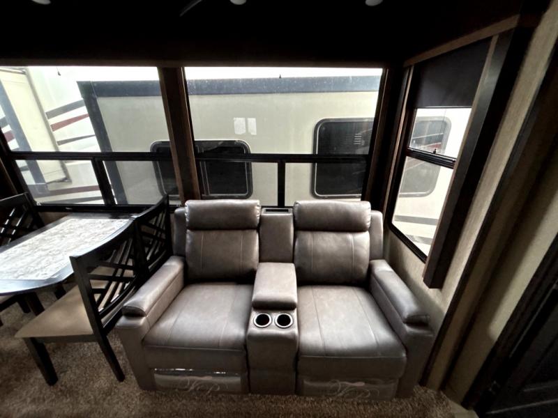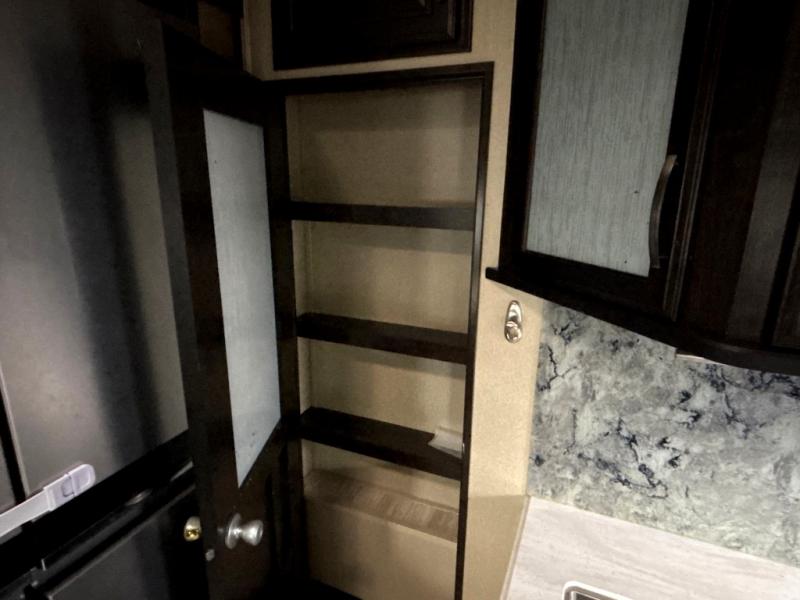If you have been searching for a livable fifth wheel, this Solitude 384GK R might be the one! Just imagine making breakfast with the professional grade stainless steel cooktop and convection microwave. You might even prepare and serve the food on the kitchen island, and store leftovers in the stainless steel 18 cu. ft. residential refrigerator. When you and your spouse aren't exploring outside, you can work at the desk, or watch your favorite show on the big screen LED TV in the living area while staying warm by the fireplace. You will find plenty of storage throughout including for your shoes, dry goods, linens, and your wardrobe. You might even decide to add a washer and dryer, a dishwasher, and a pull-out kitchen outside. Come sit in this Solitude to see how comfortable you will be!