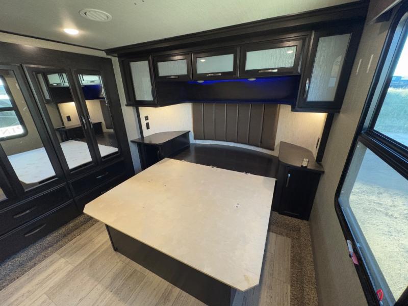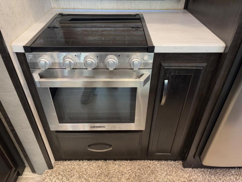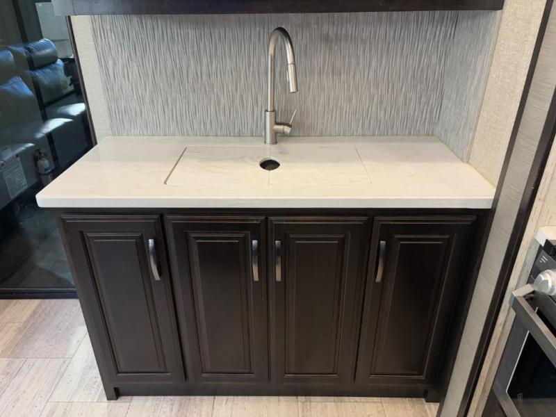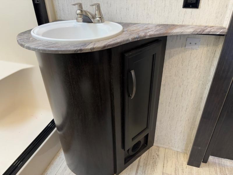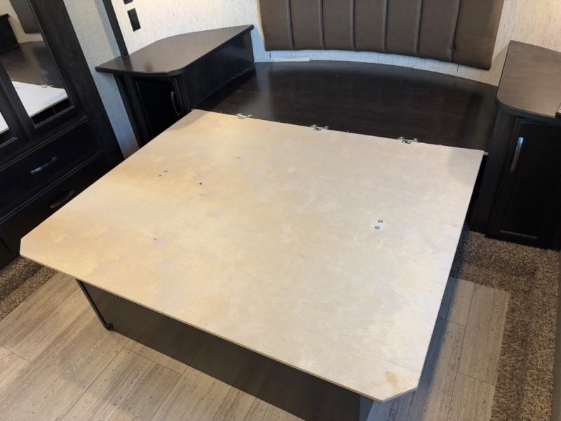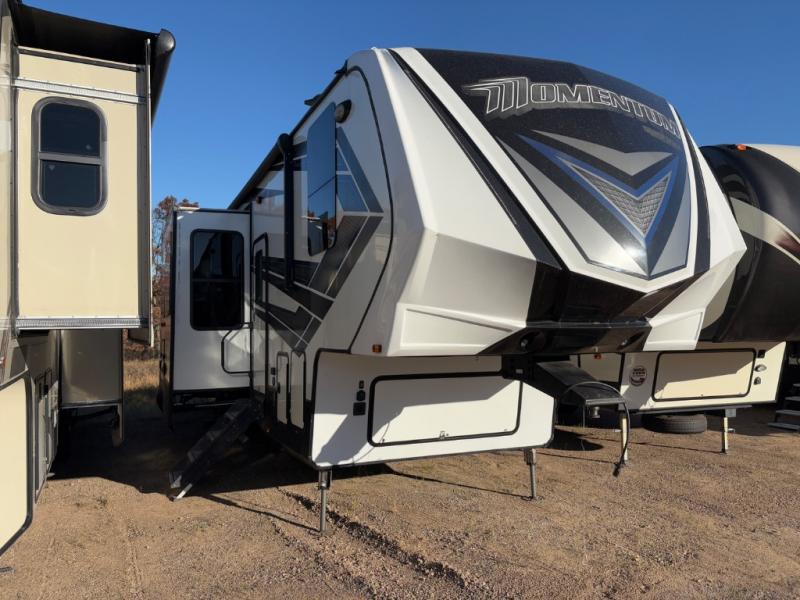 With any Momentum M-Class toy hauler fifth wheel you will enjoy extraordinary living with extreme playtime with the Weather-Tek insulation for four seasons of protection, and a fully enclosed fuel pump station to keep the fun going the whole time. The Tuff-Ply garage flooring is gas and oil resistant, plus triple insulated. You will find 2,500 lb. rated flush-mount tie-downs to keep your toys secure while moving down the road. The interior includes a sofa with headrest and removable swivel table, a convection microwave, a central vacuum system with tools and a dust pan, and a satellite/solar roof access channel to mention a few highlights. Any Grand Design Momentum M-Class allows you to keep your active lifestyle no matter where you decide to stay!