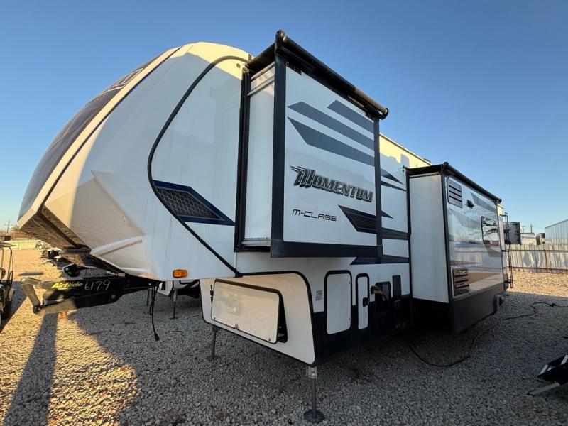 2018 GRAND DESIGN MOMENTUM M-CLASS 395M TOY HAULER SERIES, WITH A PARTY DECK, 12FT 6"FT DEEP GARAGE. 30 GALLON FUEL STATION, Length 43FT. 2 REAR BEDS, WITH UPSTAIRS SLEEPING LOFT, 3 A/C, 3 SLIDES, UNDERNEATH AND OVERHEAD STORAGE COMPARTMENTS. SUPER NICE KITCHEN, LIVING ROOM TO DIE FOR, MULTIPLE STORAGE CABINETS. ENTERTAINMENT AREA WITH MULTIMEDIA SOUND SYSTEM. FIREPLACE, INDOOR AND OUTDOOR SPEAKERS. REMOVABLE REAR DINING TABLE. DINETTE & SOFA SLEEPERS. FRONT KING BED WITH LOTS OF STORAGE. OUTDOOR SHOWER. OUTDOOR TV, WASHER/DRYER CONNECTIONS, REAR STORAGE ROOM, SUPER NICE UNIT. Lots Of Storage spots. 4 Awnings With LED Lighting. Sleeps 10, 3 COLD A/C. Super Clean.. SUPER NICE TRAILER ONLY 15400Lbs UVW. 50AMP POWER. OUR PRICE $45,995. SEVERAL SUPER NICE RVS TO CHOOSE FROM. We are located in KENNEDALE TX. We show Rv's 7 Days A WEEK BY APPOINTMENT. Call BRET 817*805*0067 or AMY 817*658*4633 FREE DELIVERY AVAILABLE TO ALL 48 STATES. WE INSPECT & GO THROUGH ALL TRAILERS TO ENSURE OUR CUSTOMERS ARE 100% SATISFIED. SE HABLA ESPANOL!