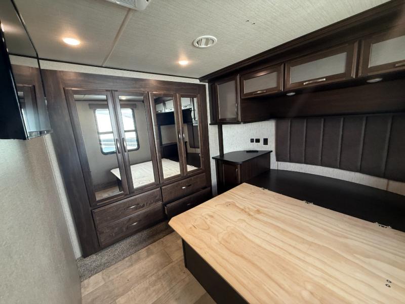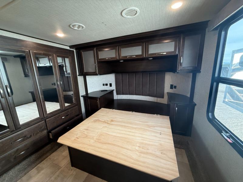 With any Momentum M-Class toy hauler fifth wheel you will enjoy extraordinary living with extreme playtime with the Weather-Tek insulation for four seasons of protection, and a fully enclosed fuel pump station to keep the fun going the whole time. The Tuff-Ply garage flooring is gas and oil resistant, plus triple insulated. You will find 2,500 lb. rated flush-mount tie-downs to keep your toys secure while moving down the road. The interior includes a sofa with headrest and removable swivel table, a convection microwave, a central vacuum system with tools and a dust pan, and a satellite/solar roof access channel to mention a few highlights. Any Grand Design Momentum M-Class allows you to keep your active lifestyle no matter where you decide to stay!